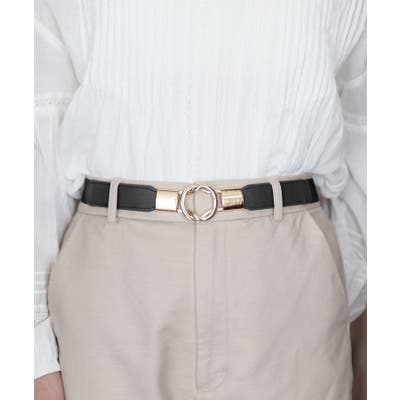 ウエストマークで細見えしつつ、ゴールドのバックルで高見えするベルトです。