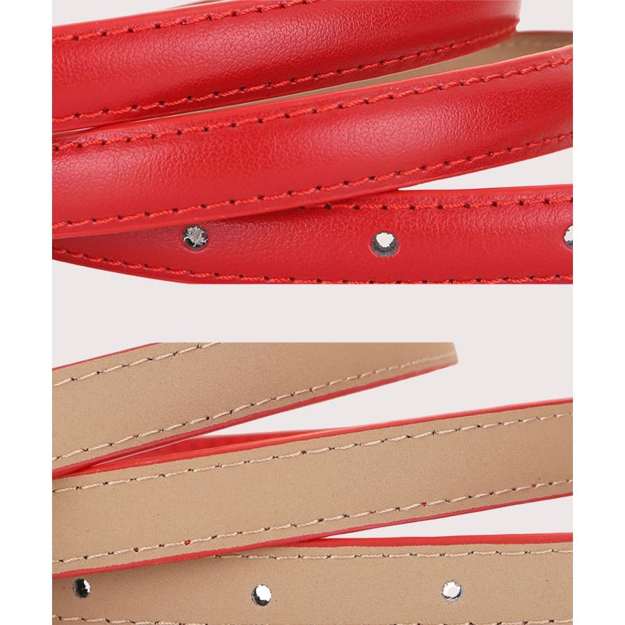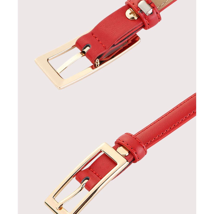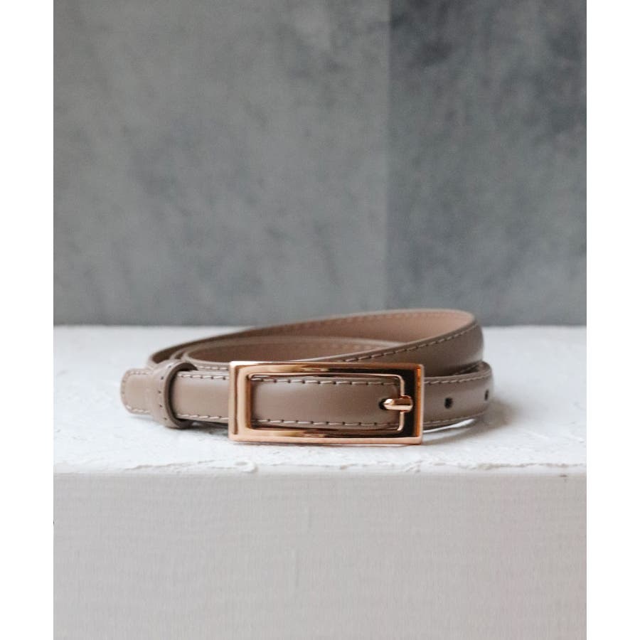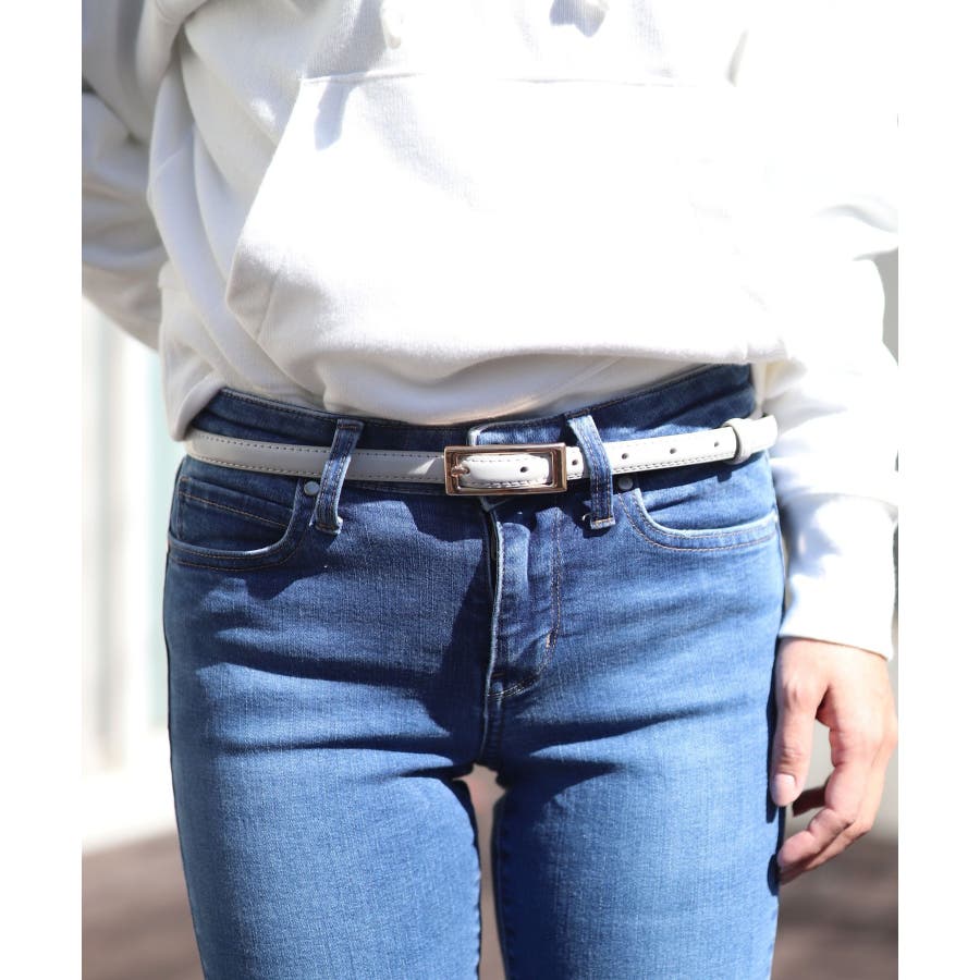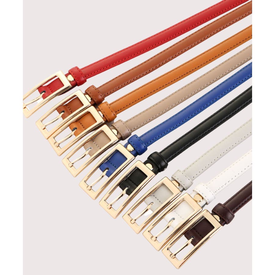 人気のスクエアバックルデザインでさまざまなコーデに合わせやすい細ベルト。