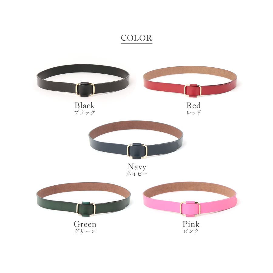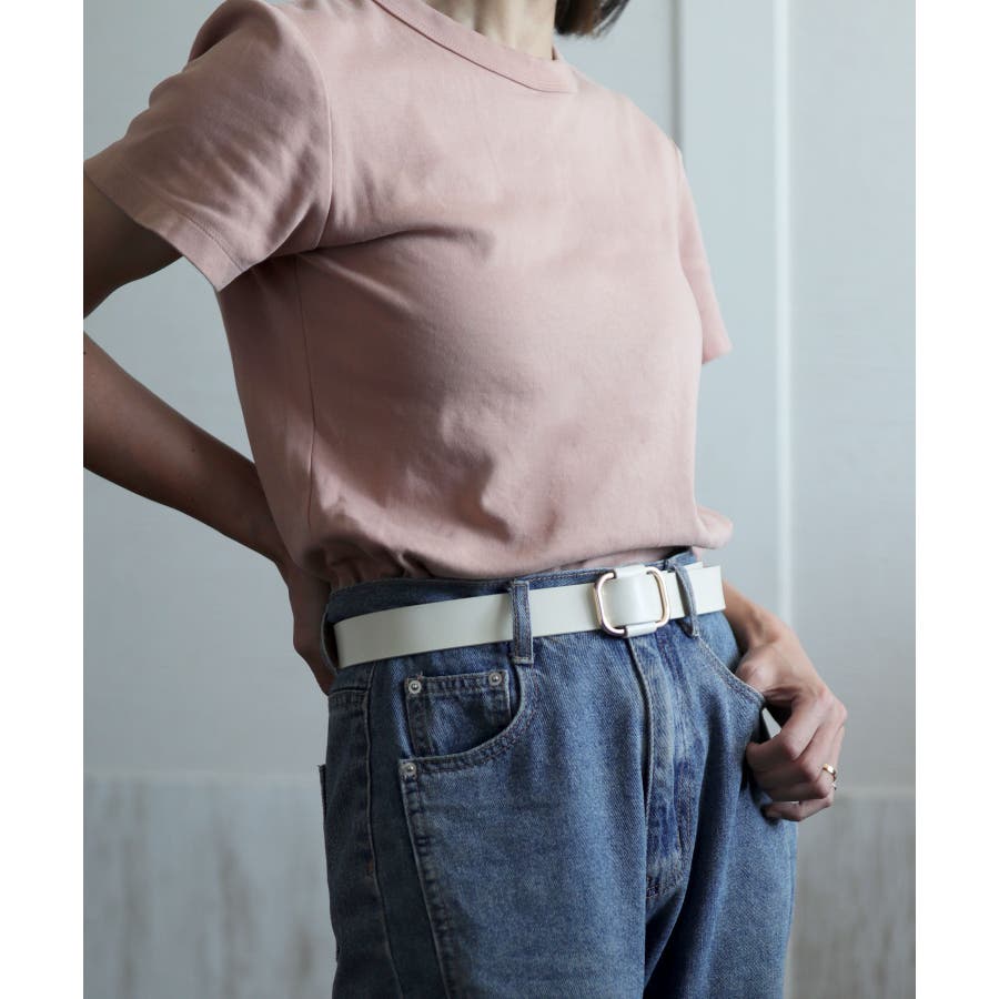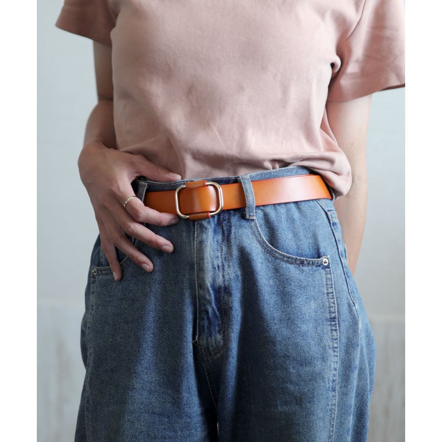 人気のリングスクエアバックルデザインでさまざまなコーデに合わせやすいベルト。