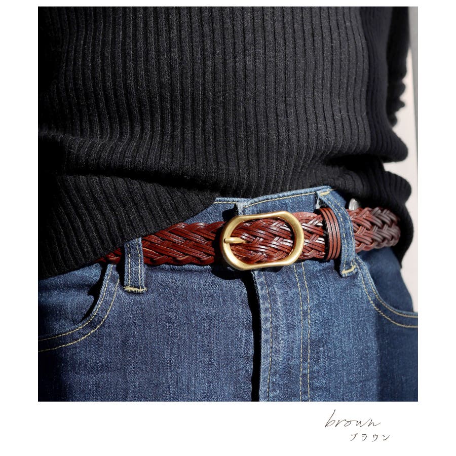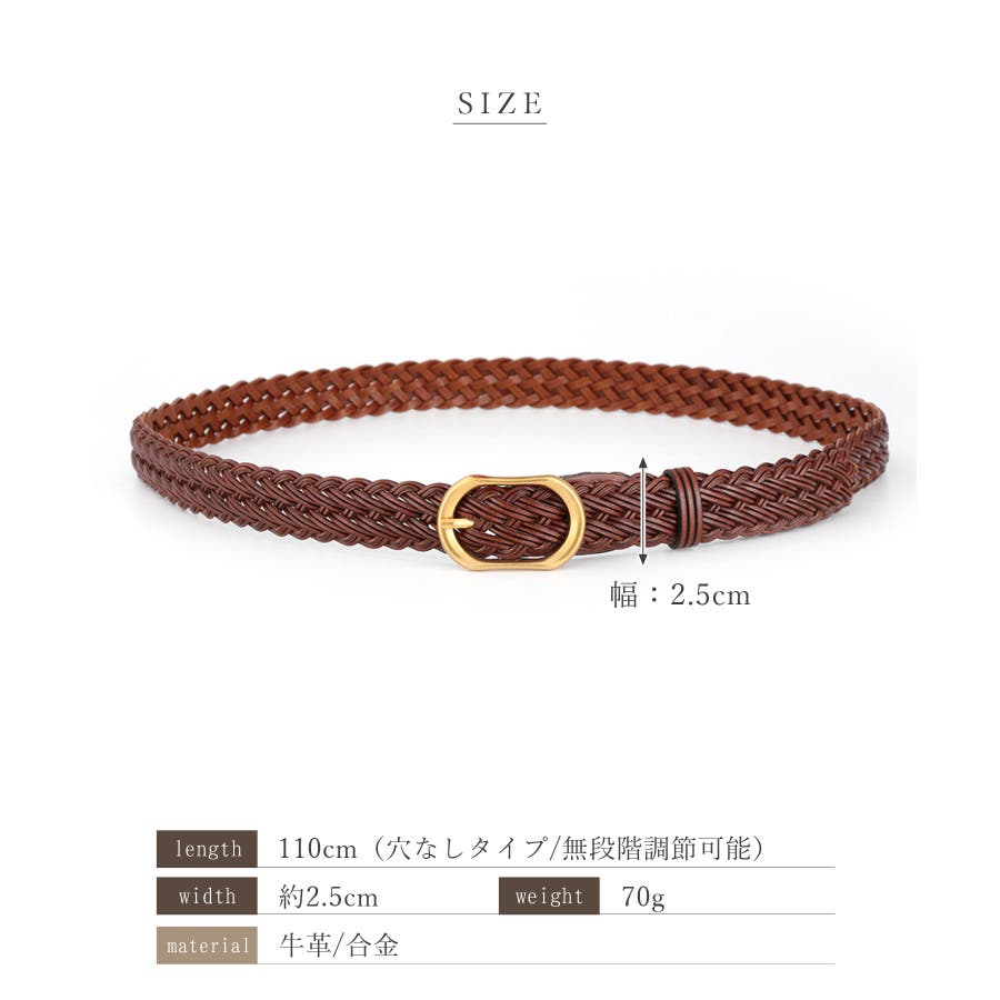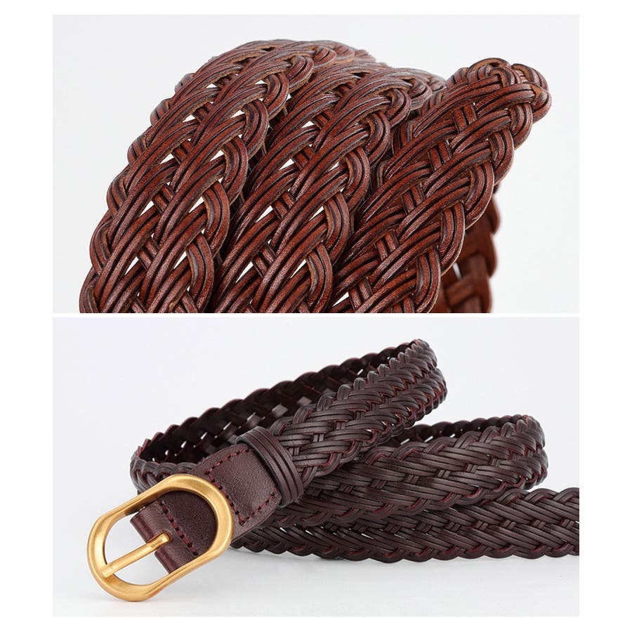 編み込みデザインがコーデのアクセントになる、使い勝手◎な牛革ベルト。