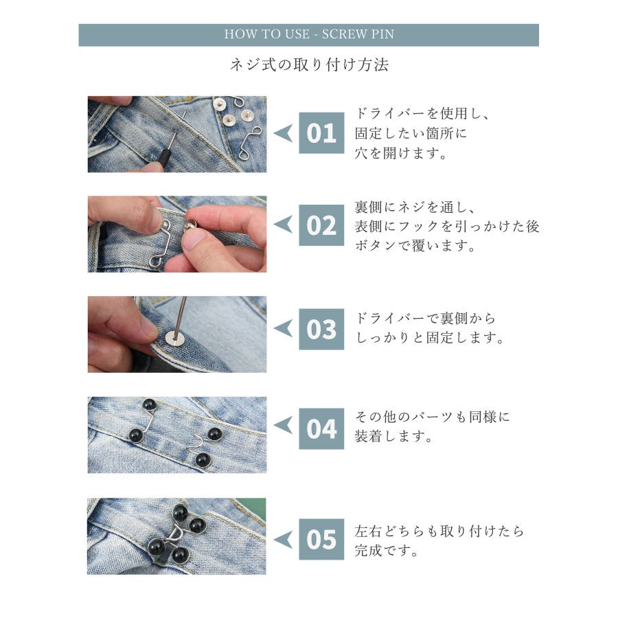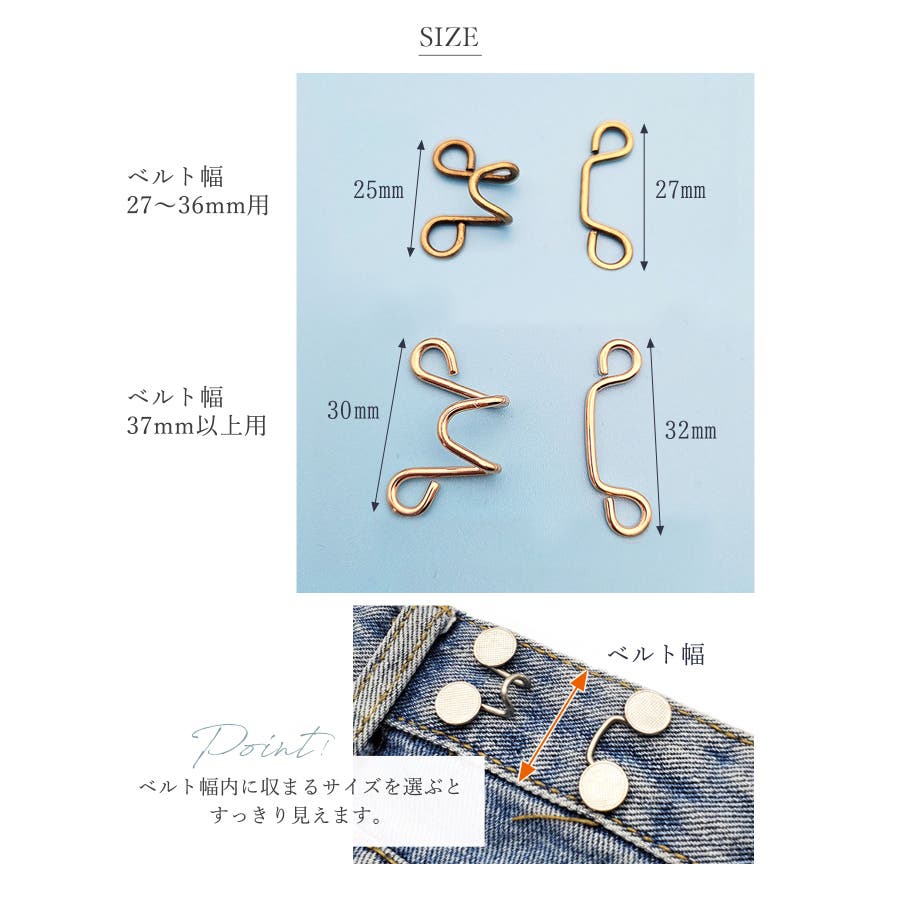オーバーサイズでウエストが緩いボトムスなどに取り付けるだけで、簡単にサイズ調節が可能です。