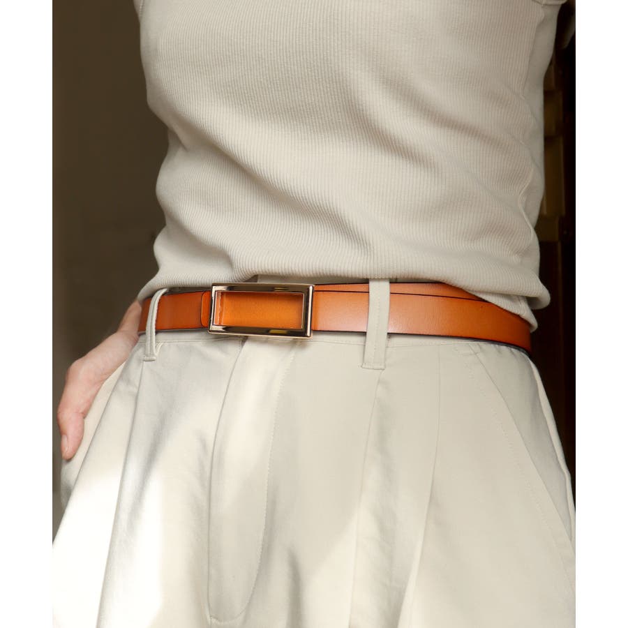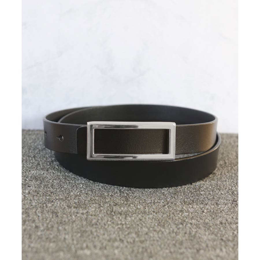 厚みのあるレザーとスクエアバックルを使用したベルト。