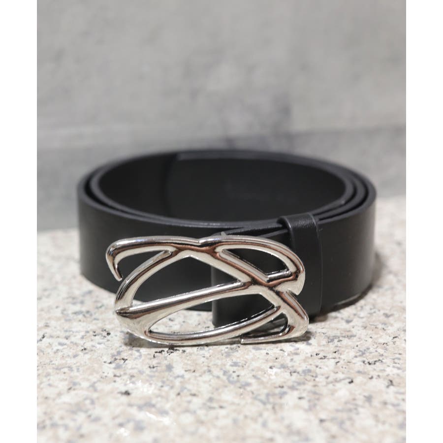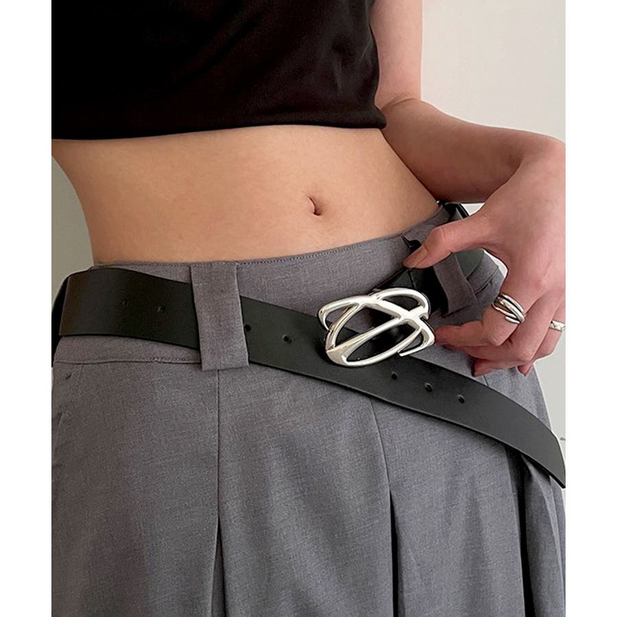 ユニークなバックルデザインがタックインコーデのポイントになるベルトです。