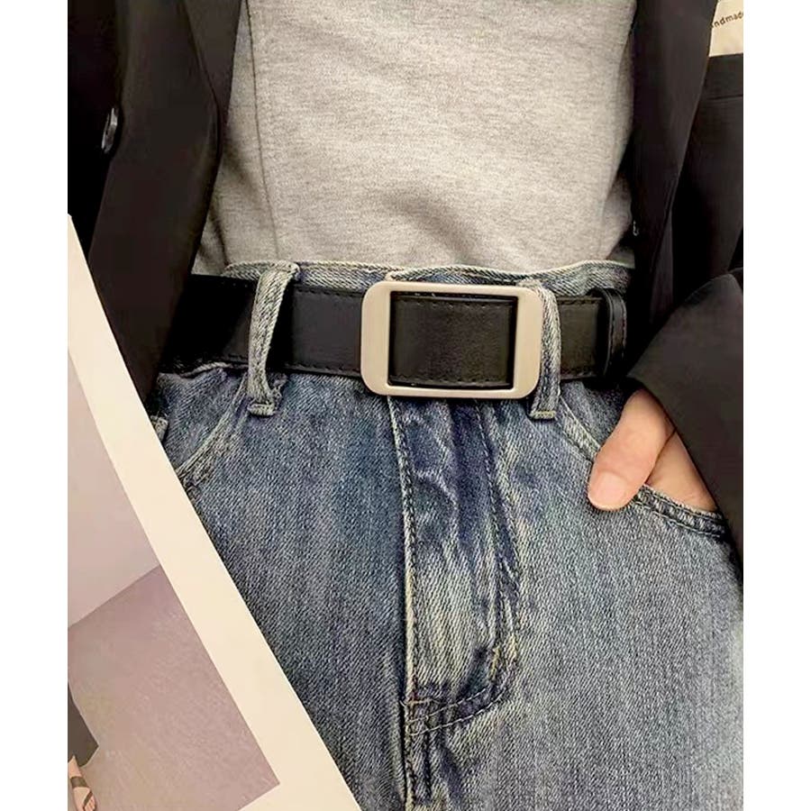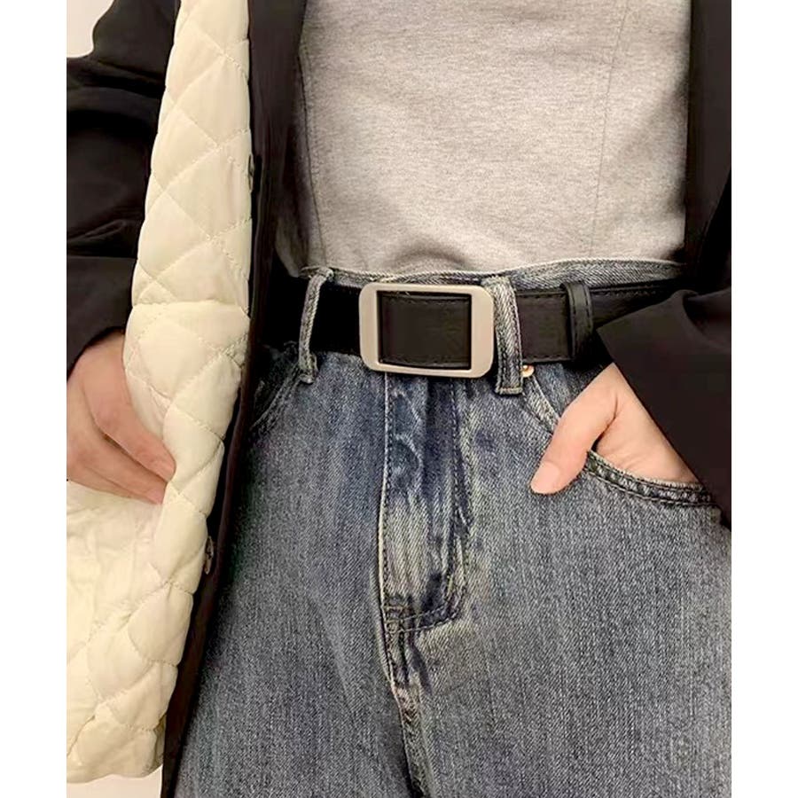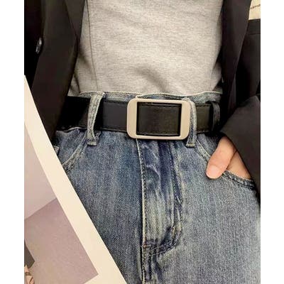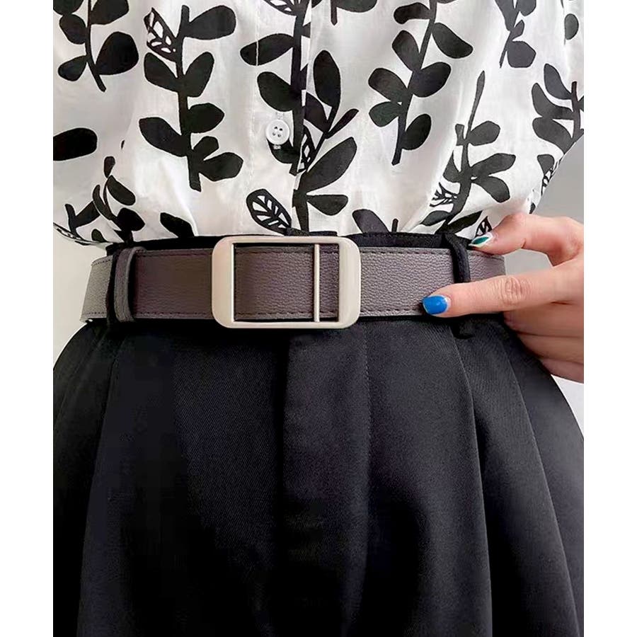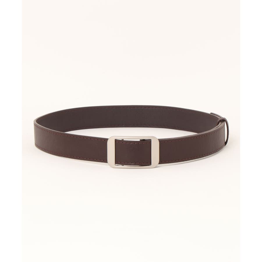 シンプルながら目に留まるバックルデザインが、タックインコーデのポイントになるベルトです。