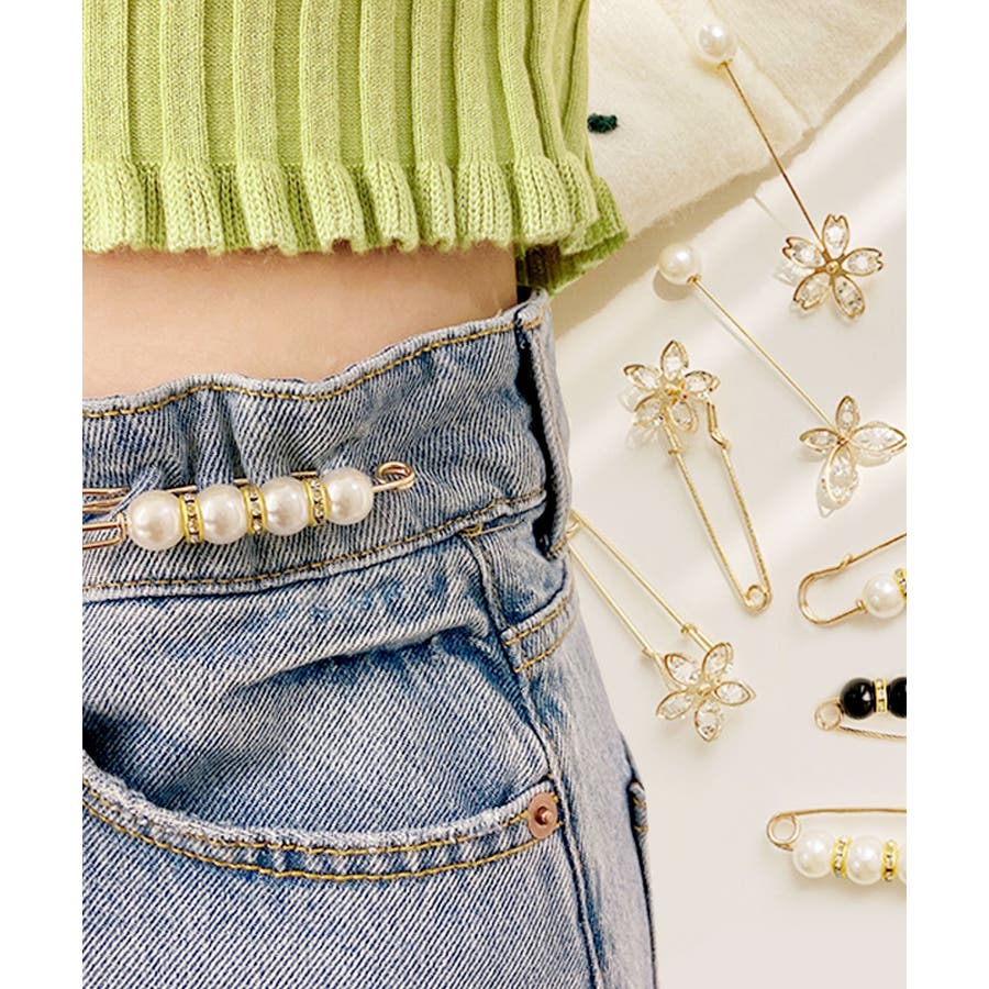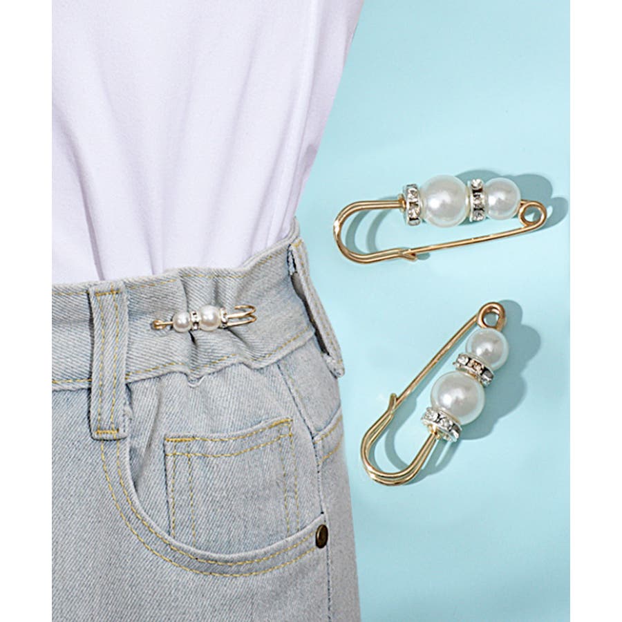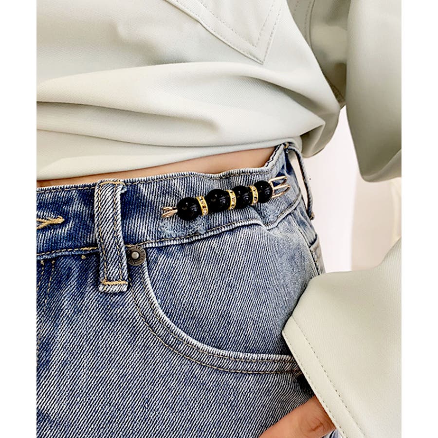 キラキラ光るビジューやパールをあしらった、おしゃれなボトムスサイズ調整グッズ!