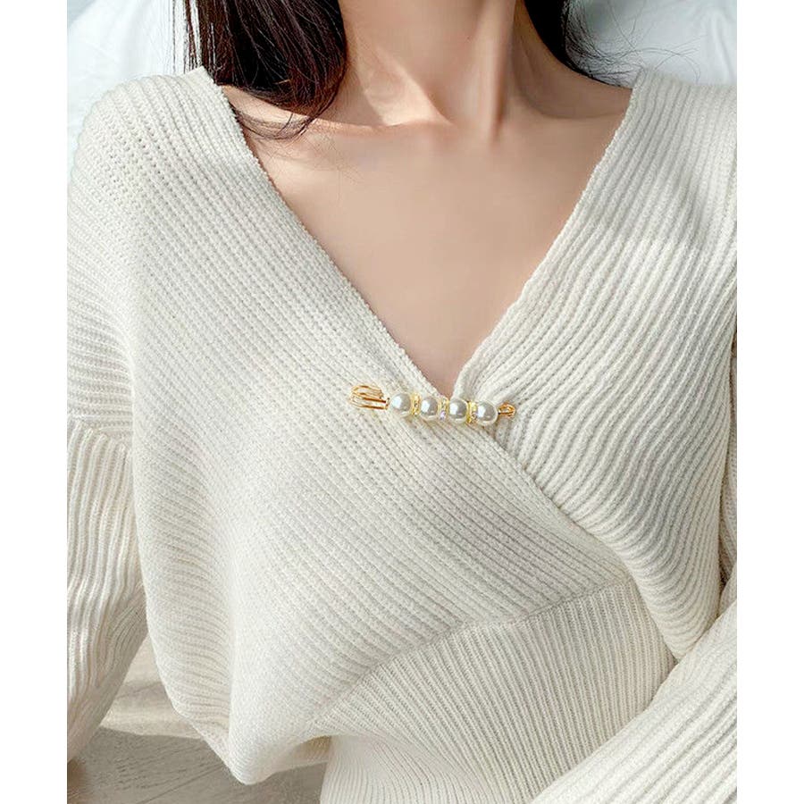 パールビジューデザインウエスト調節ピン/ブローチピン。