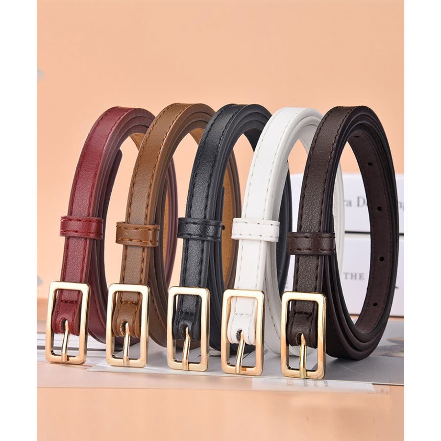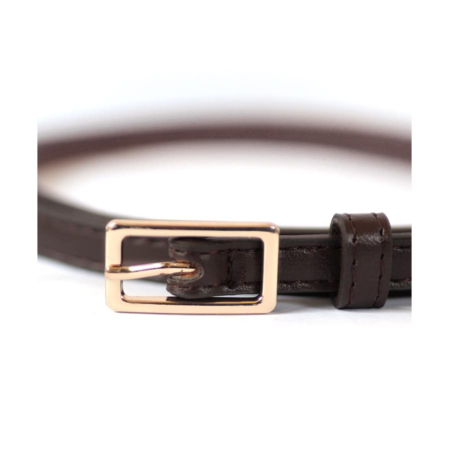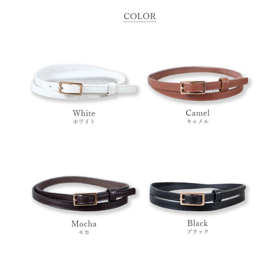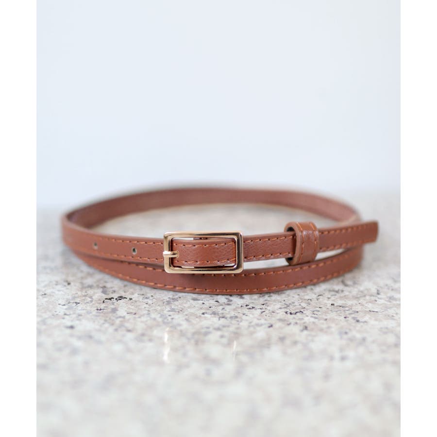 1.1cmの細幅PUレザーにコンパクトなゴールドバックルが、おしゃれな印象のシンプルデザインのベルト。
