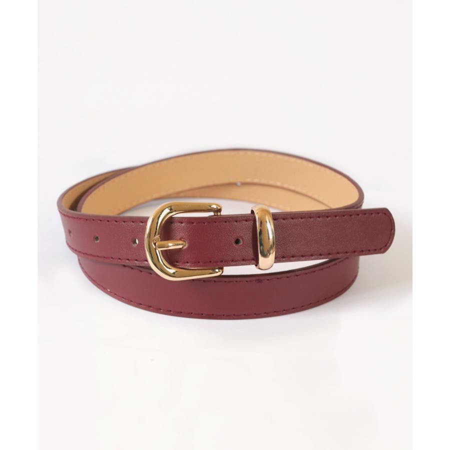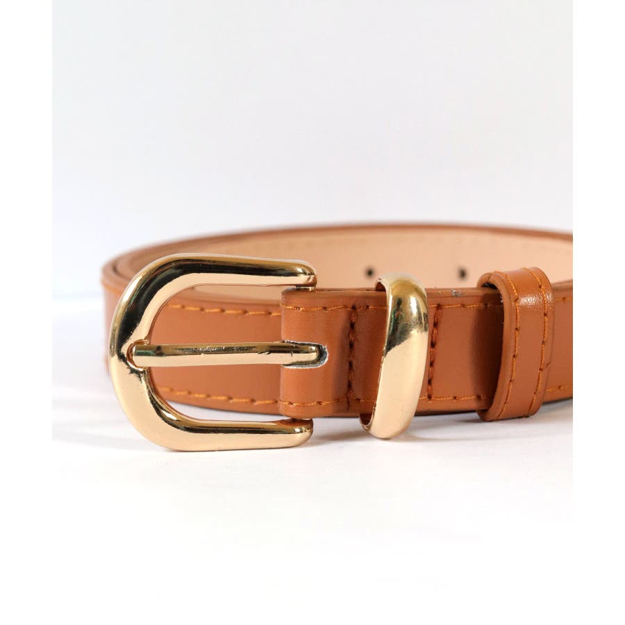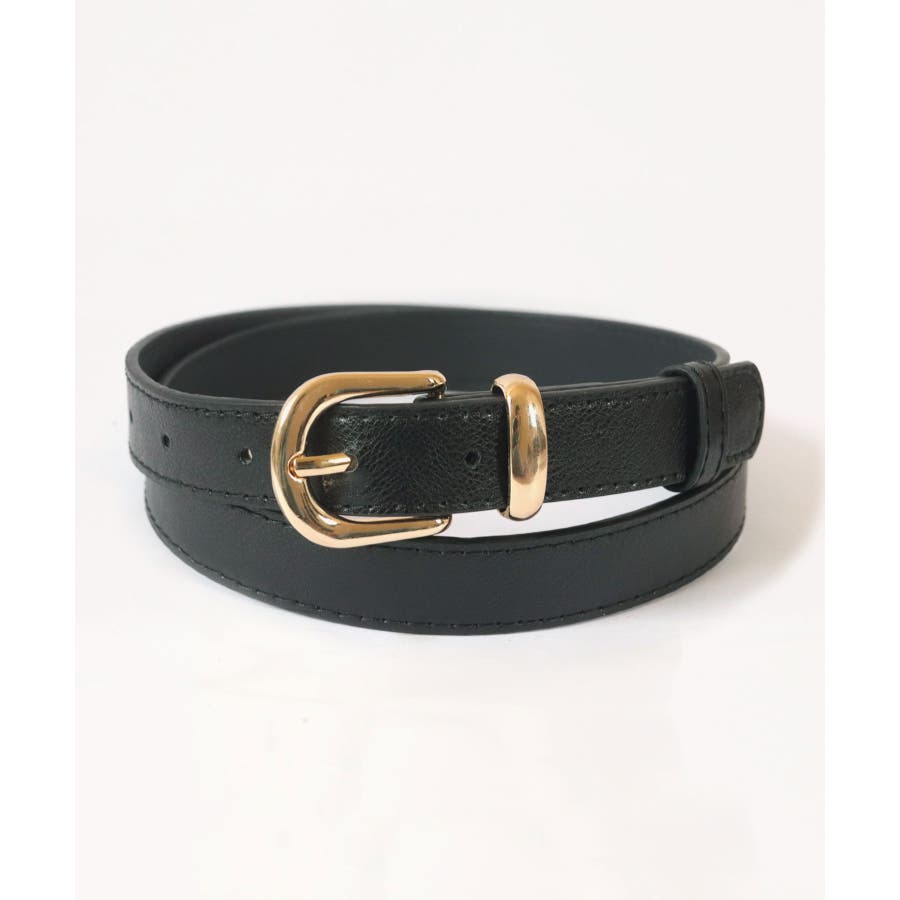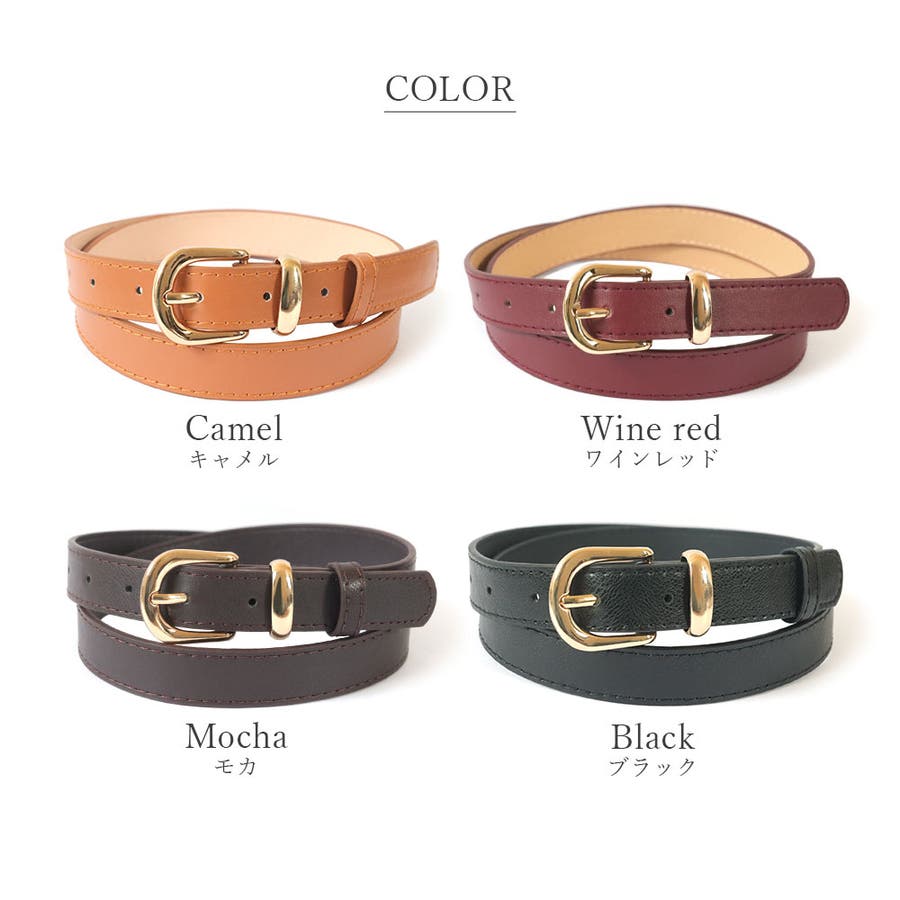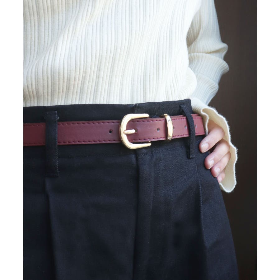 2.3cmの細幅ベルト幅で、パンツスタイルやスカートコーデにもマッチする万能デザインベルト。