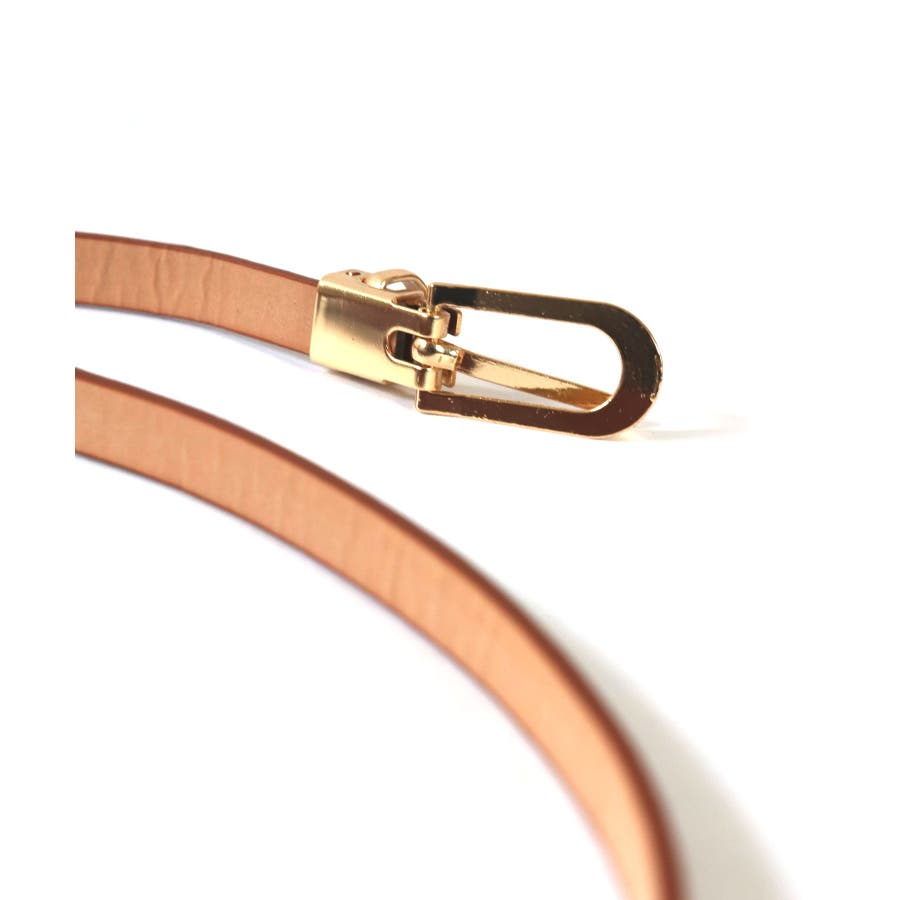 シンプルなPUレザーに上品なゴールドピン式バックルを組み合わせたレディライクなデザインベルト♪