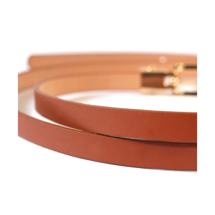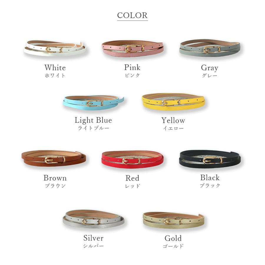 パンツスタイルやスカートコーデに取り入れたい、おしゃれな細幅ベルトです。