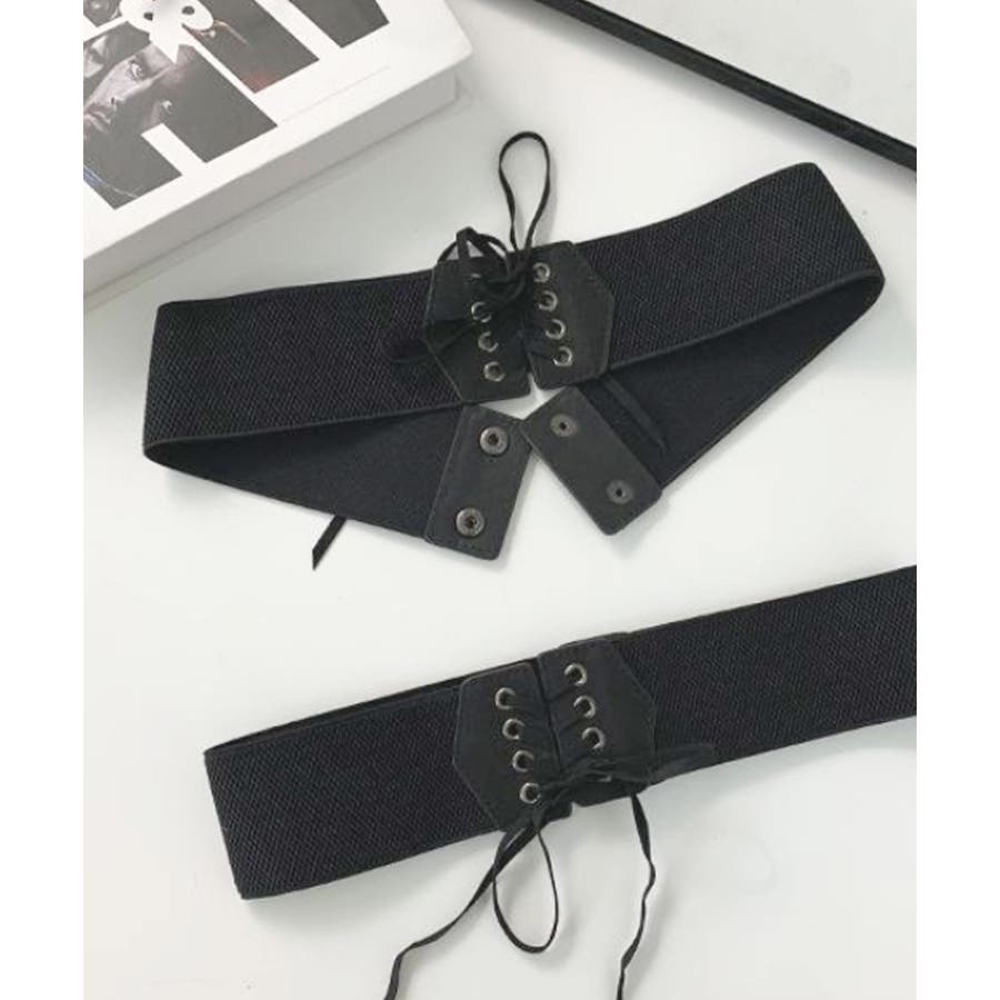 レースアップデザイン太幅ゴムベルト。