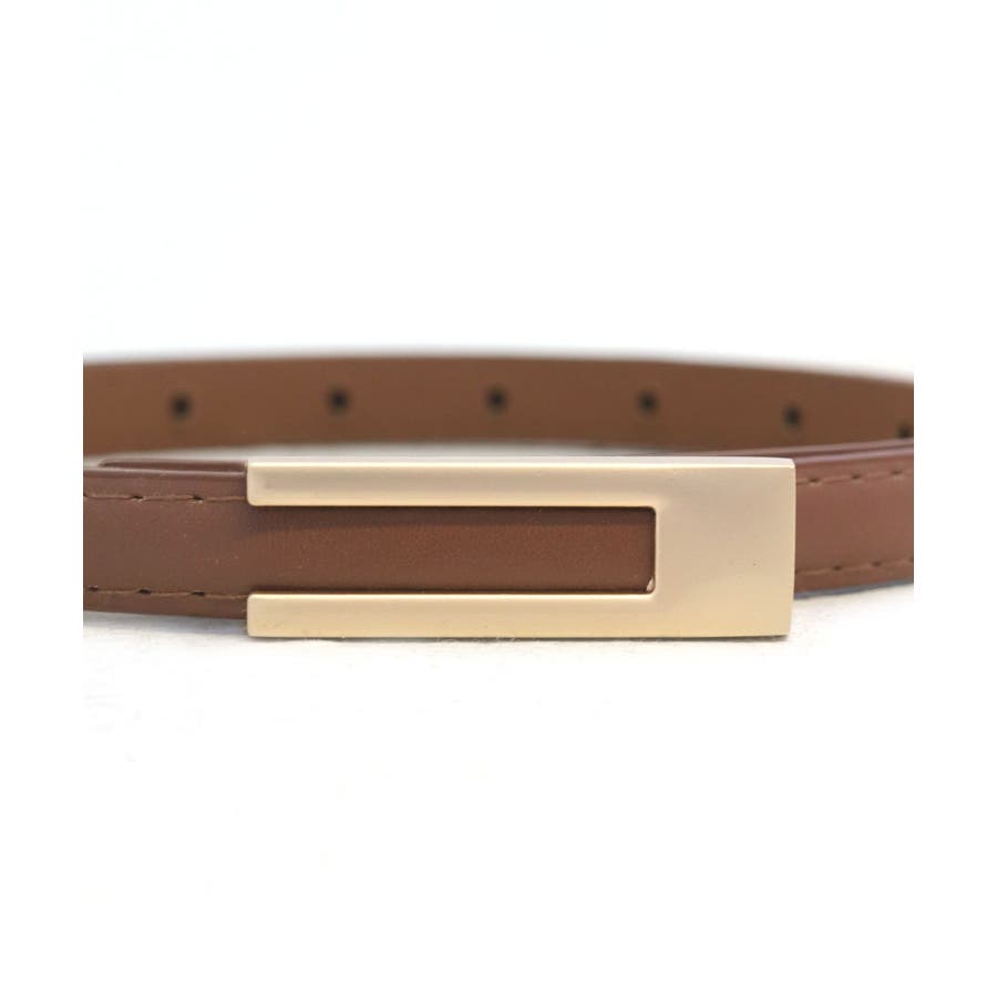 光沢感を抑えた上品なバックルカラーに細みのベルト幅がレディライクなデザイン。