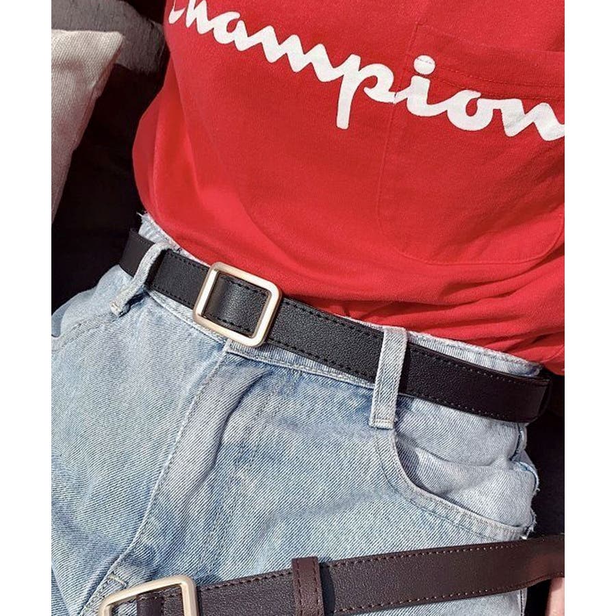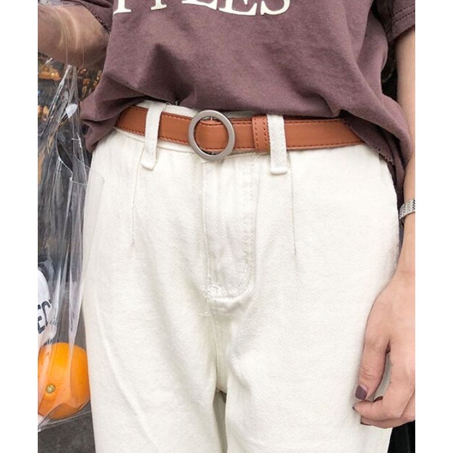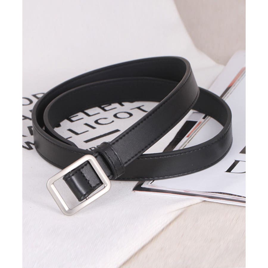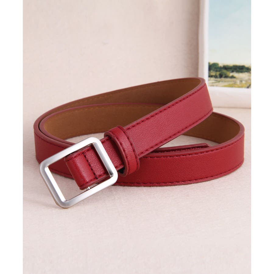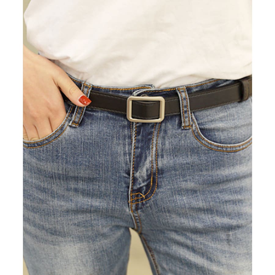 PUレザー細めノンホールレディースベルト。