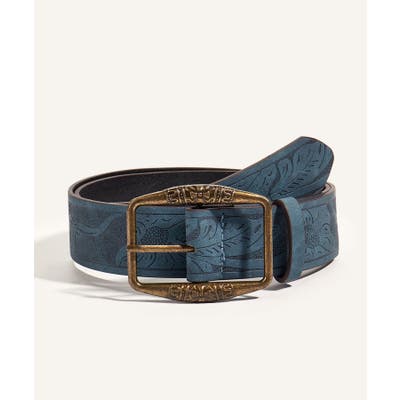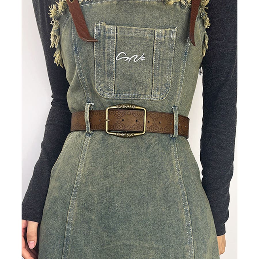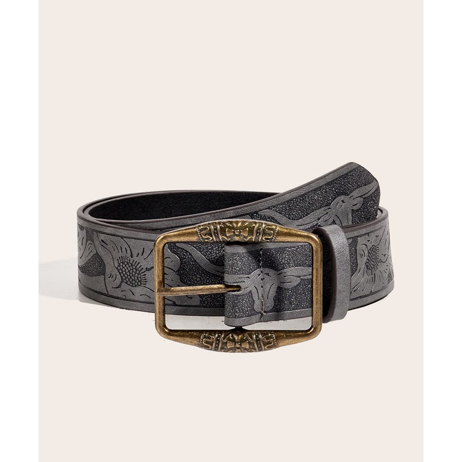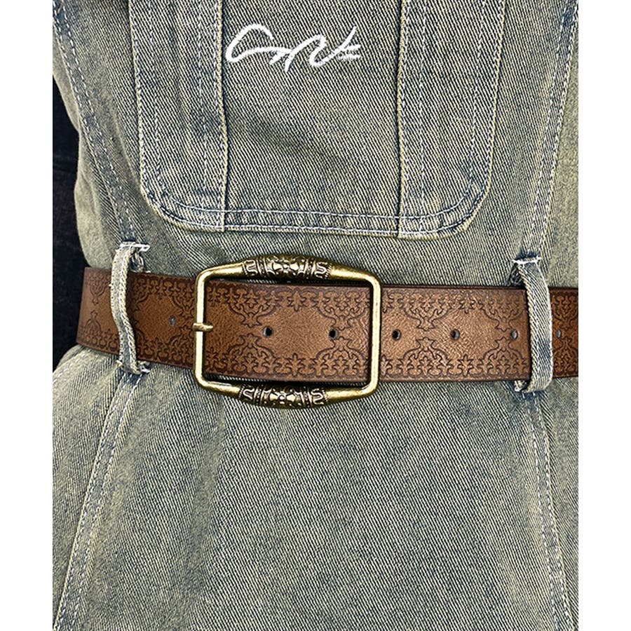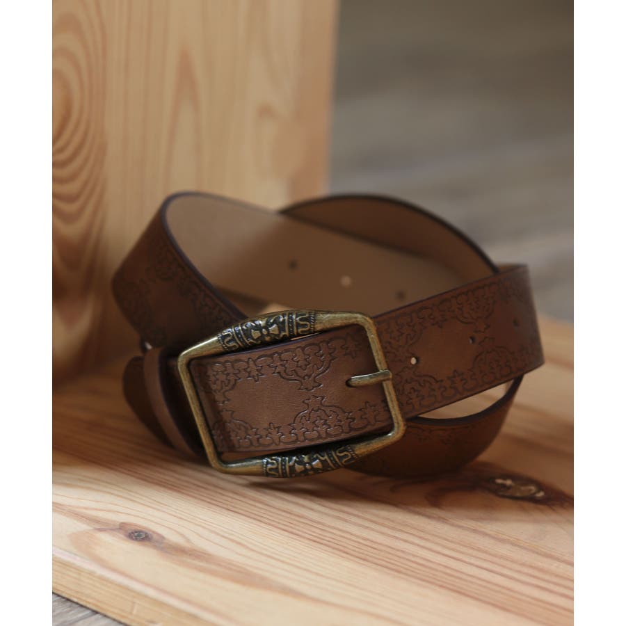 ヴィンテージライクボタニカル彫刻ワイドベルト。