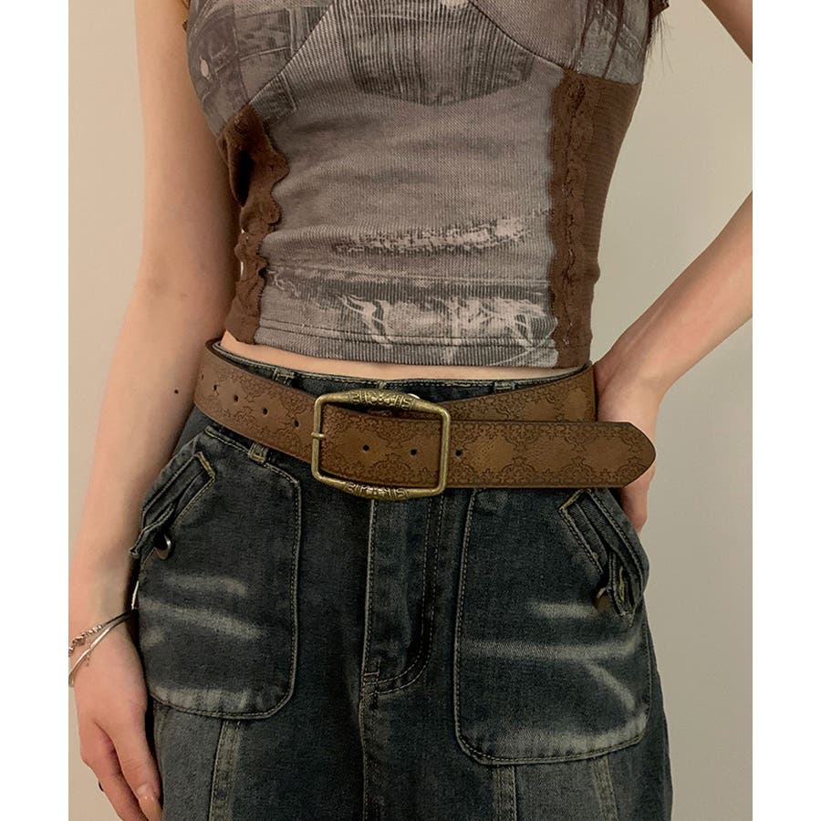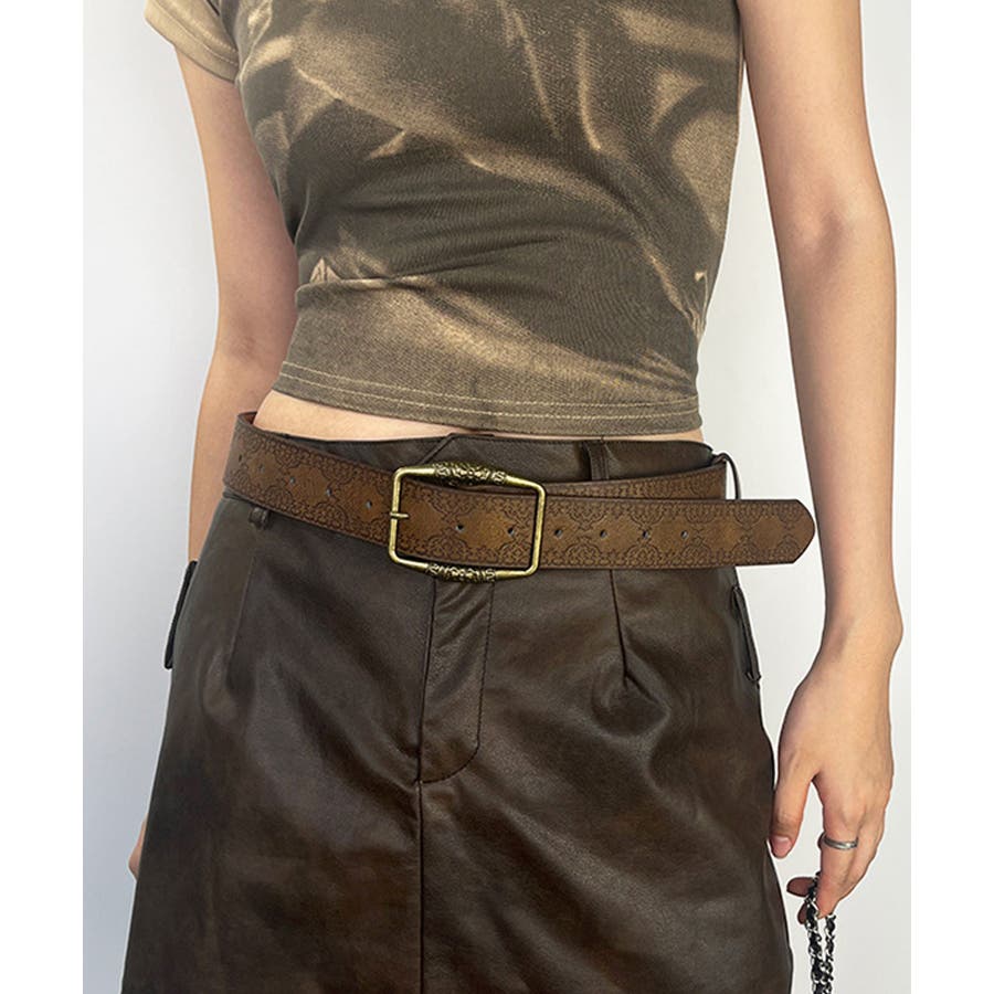 しっとりマットなPUレザーに、ヴィンテージライクなゴールドバックルを組み合わせたレトロかわいいデザインベルト。