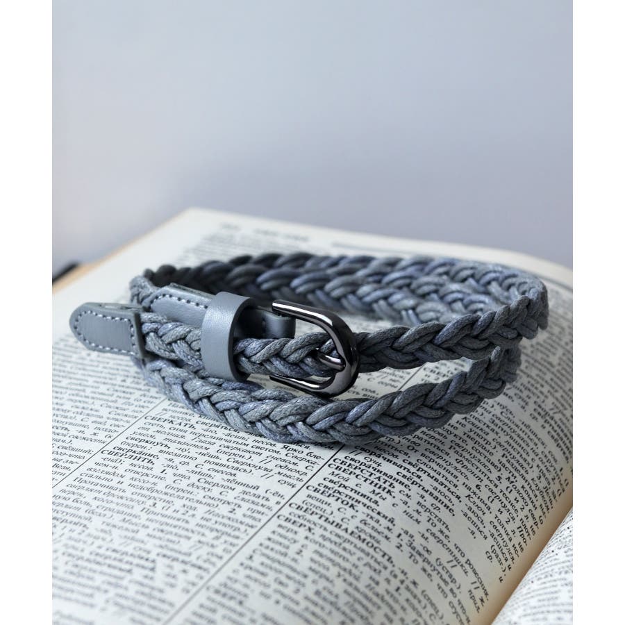 ナチュラルな風合いのロープを編み込み、ブラック調ピンバックルを組み合わせたおしゃれなベルト。