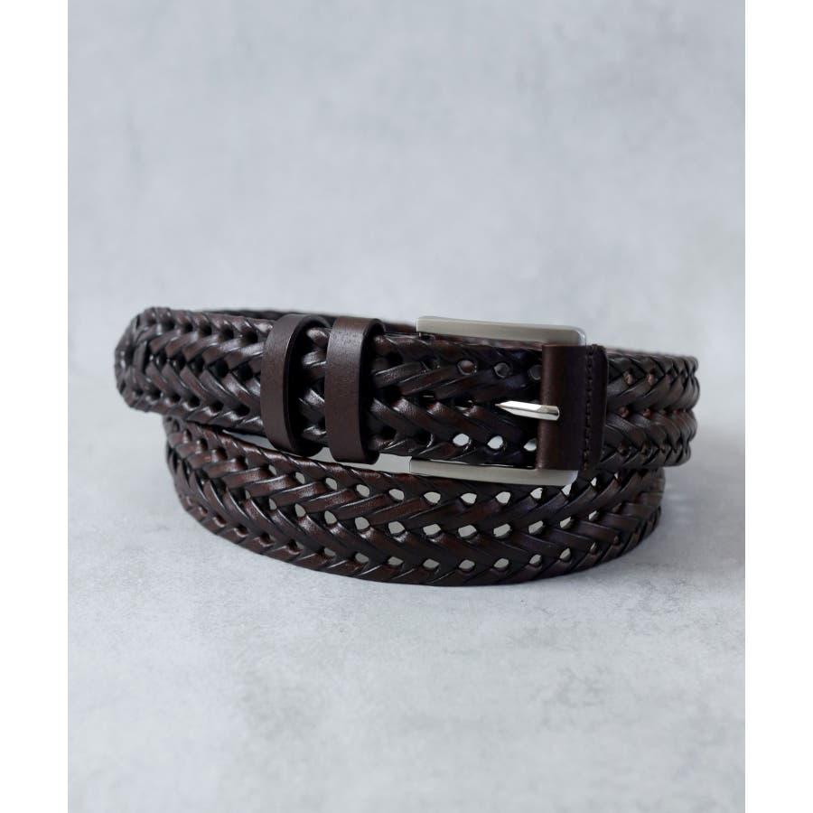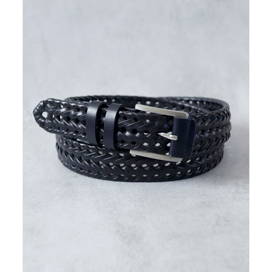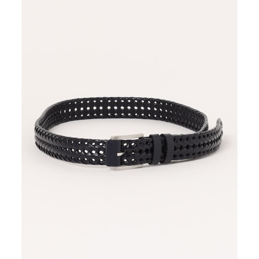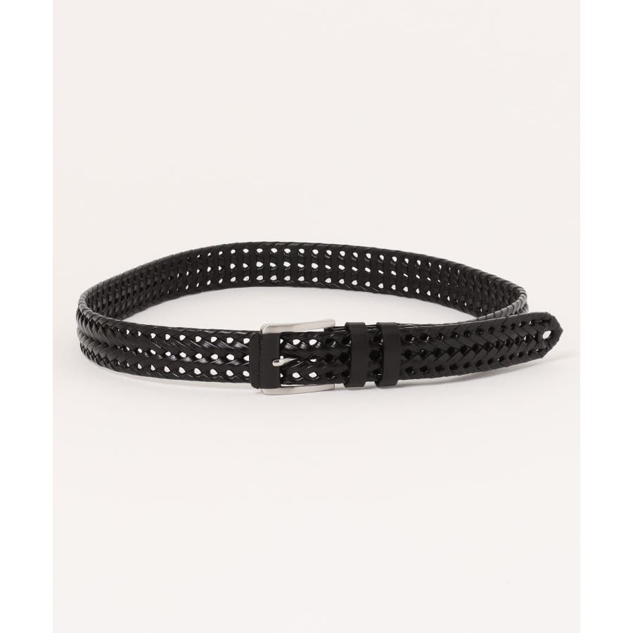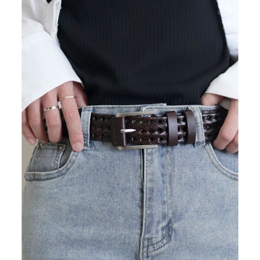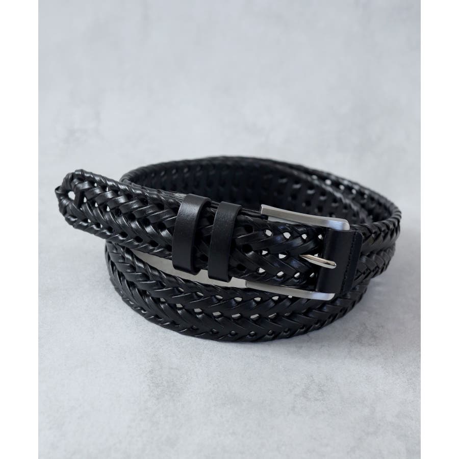 頑丈なPUレザーを編み込み、シャープなシルバーバックルを合わせたおしゃれなベルト。