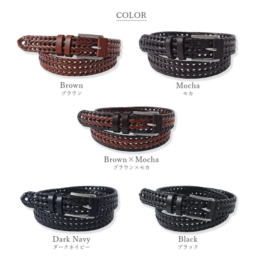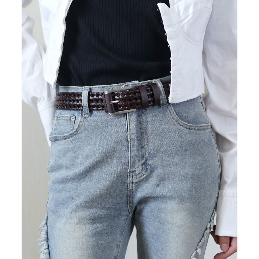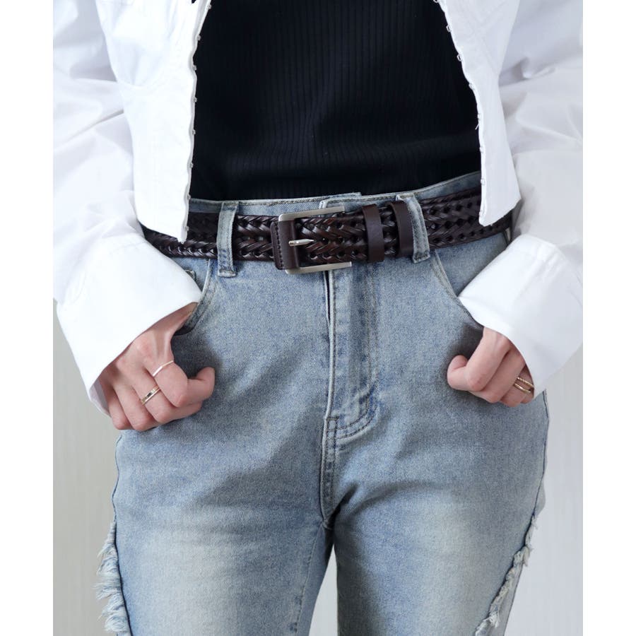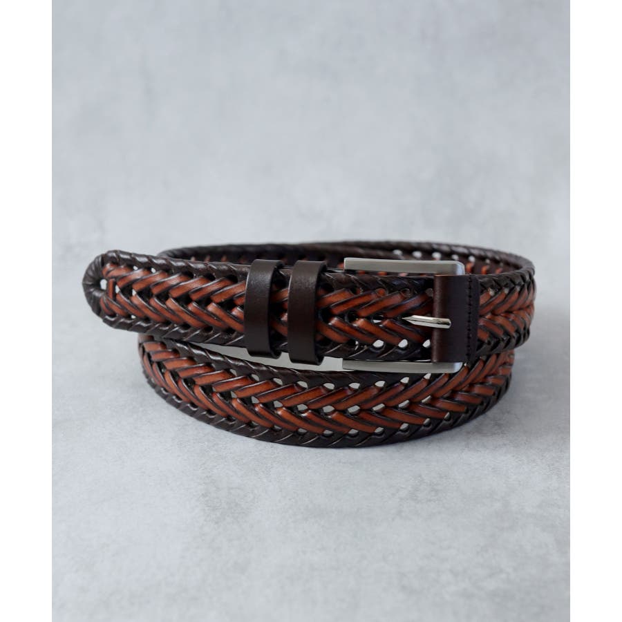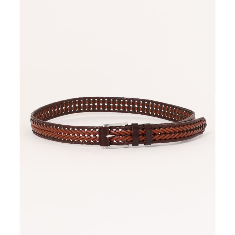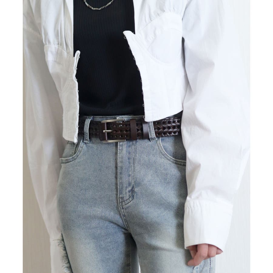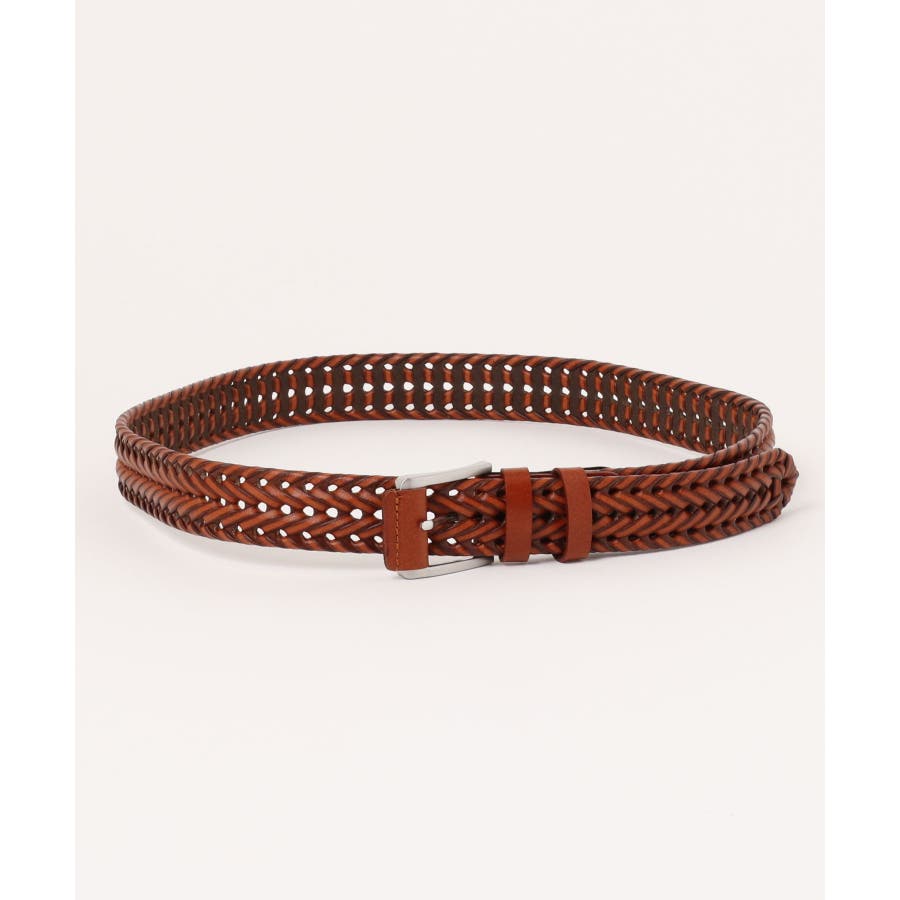 頑丈なPUレザーを編み込み、シャープなシルバーバックルを合わせたおしゃれなベルト。