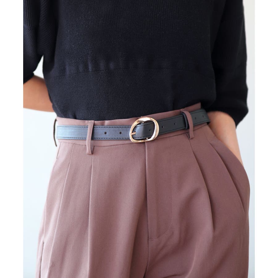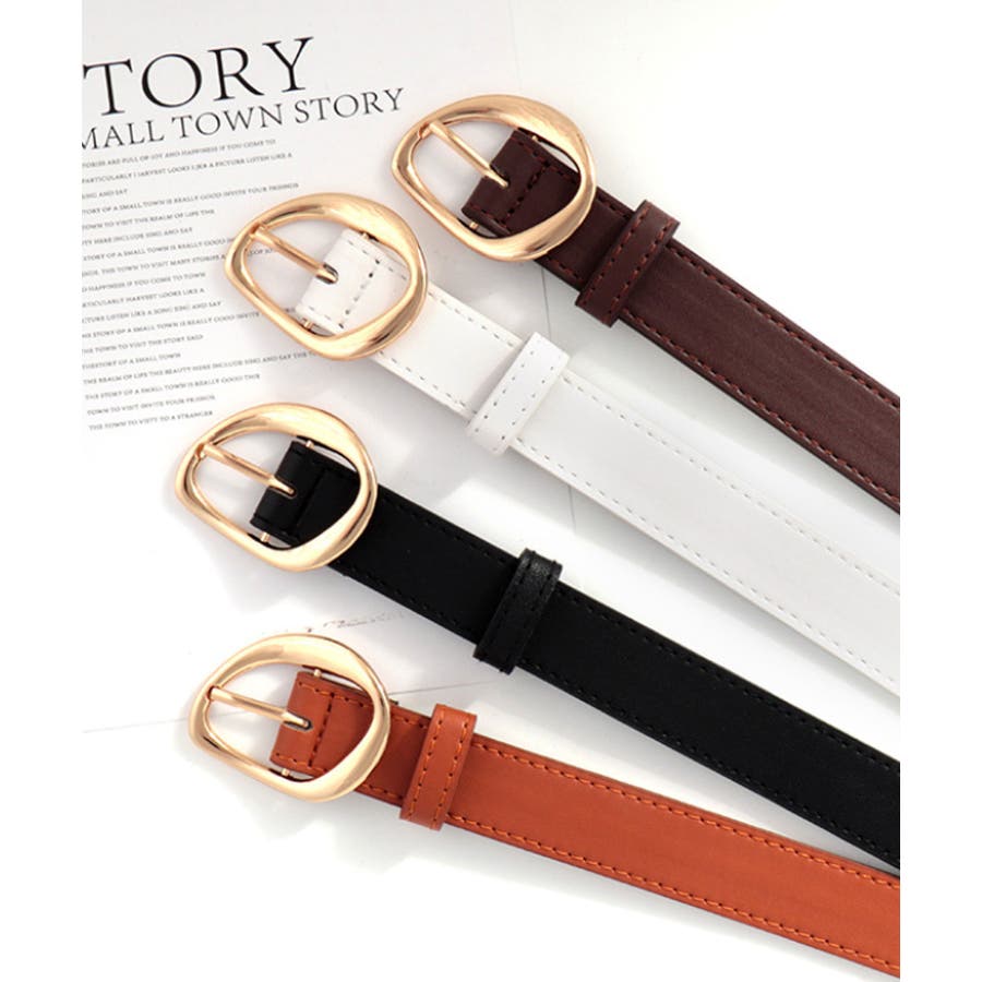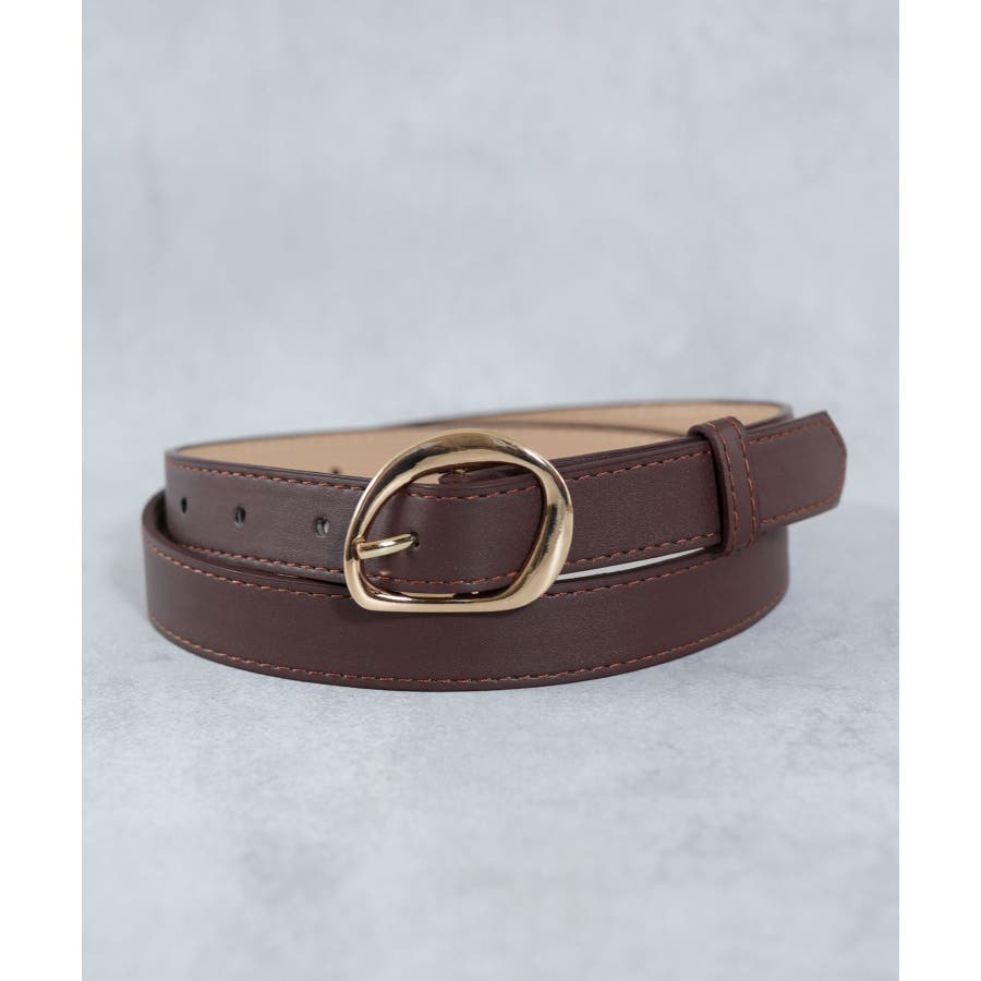 アシメのゴールドバックルにしなやかなPUレザーを合わせたおしゃれなデザインベルト。
