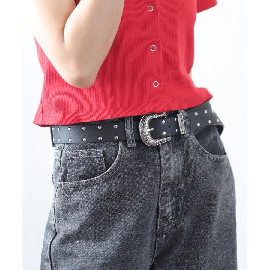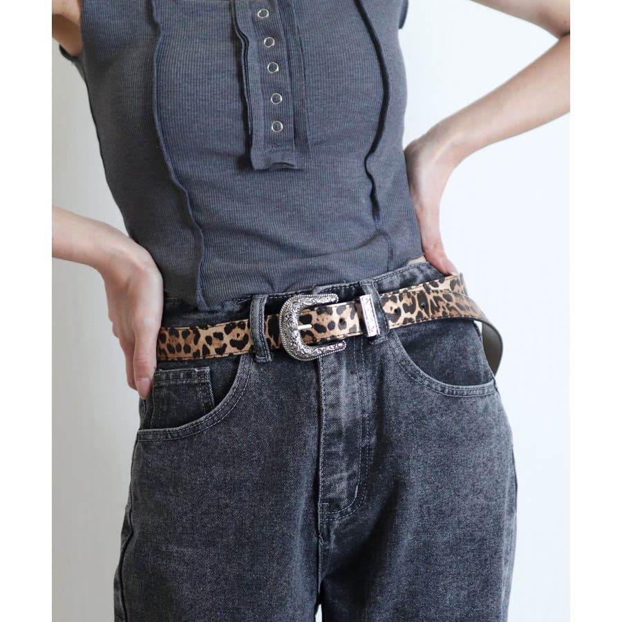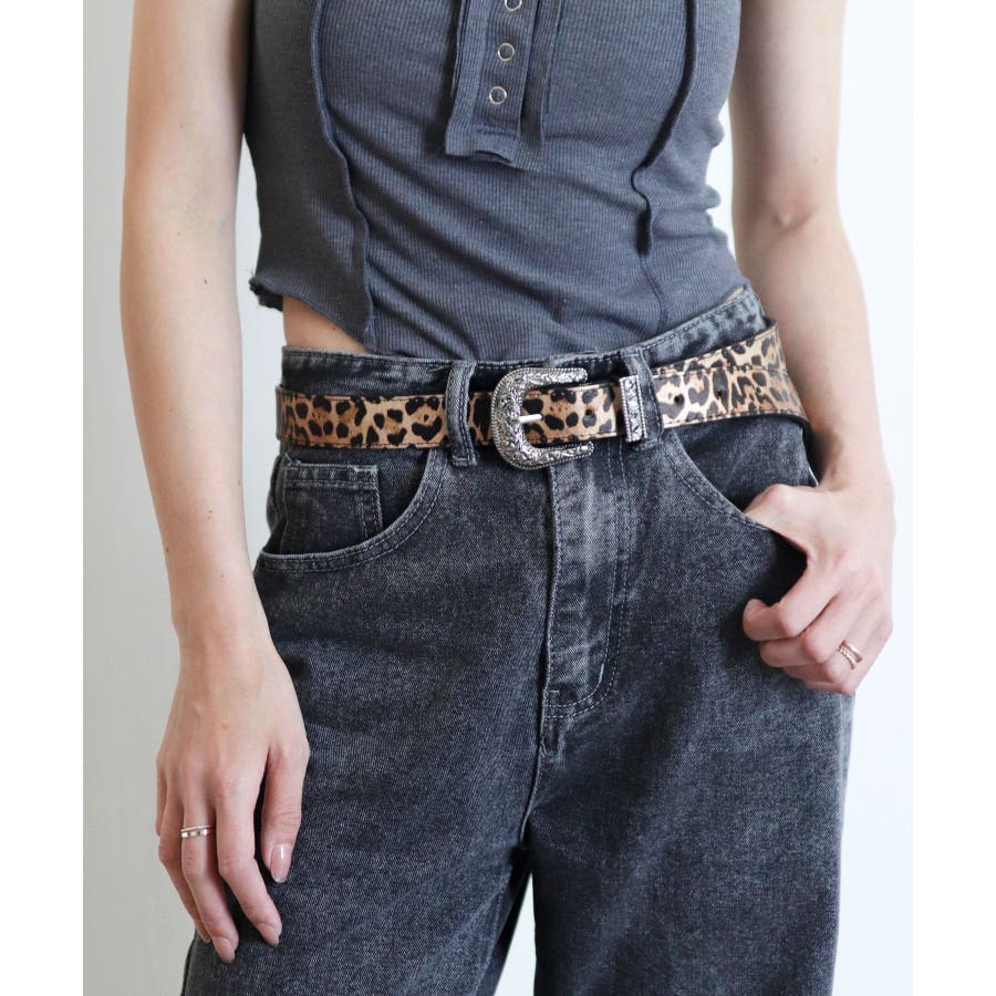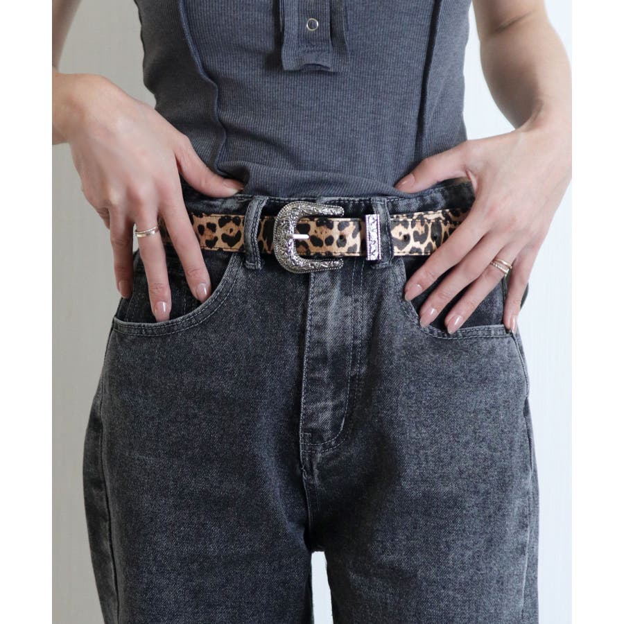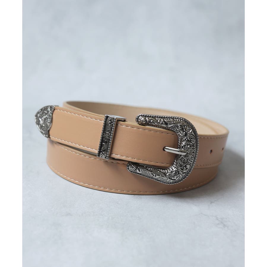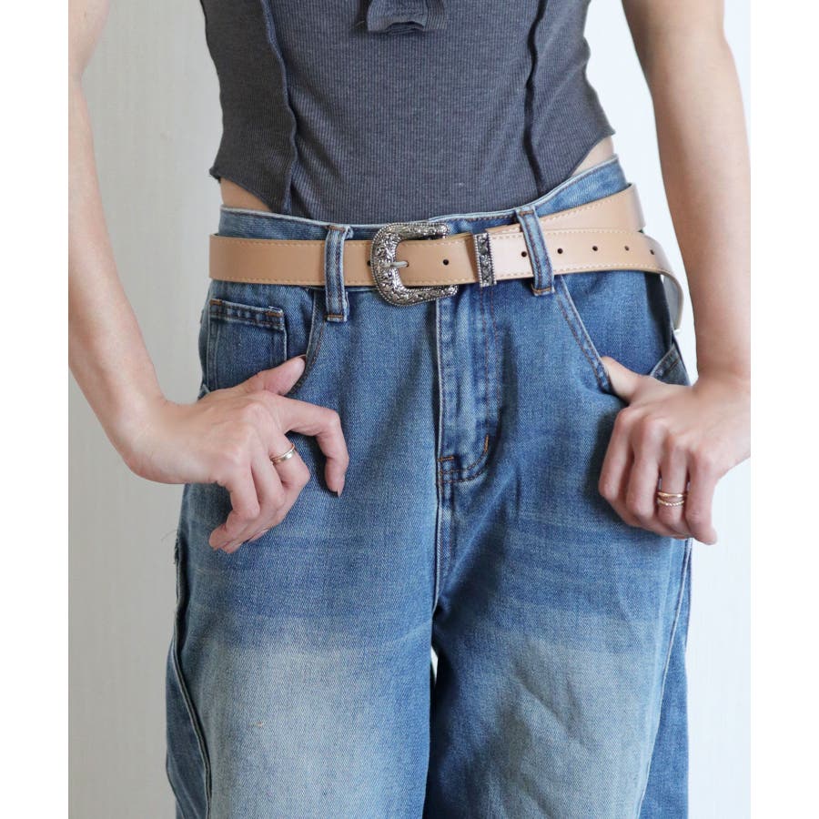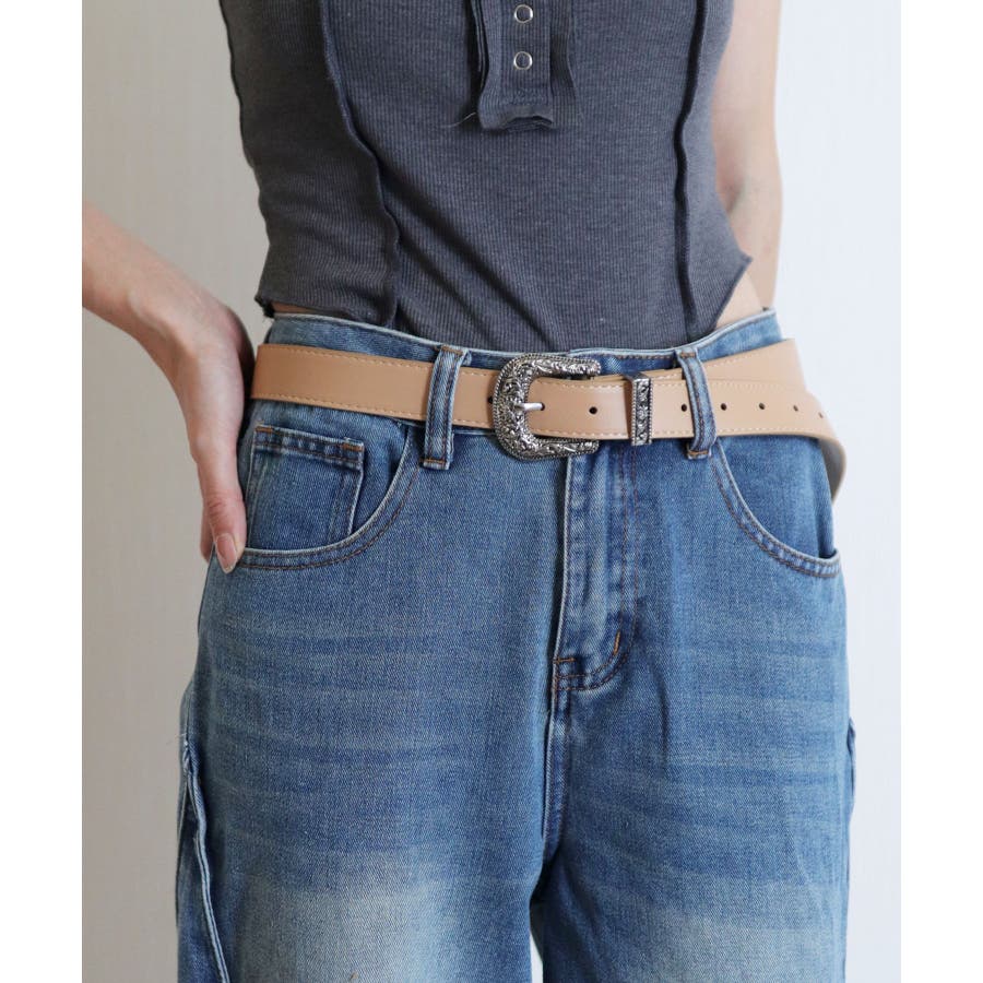 装飾的なシルバーバックルがコーデに映えるウエスタン調ベルト/カジュアルベルト。