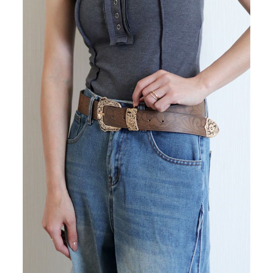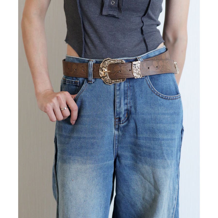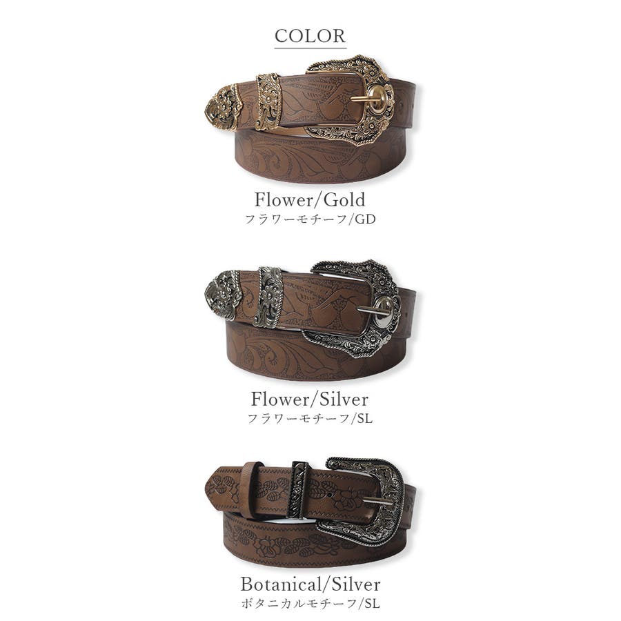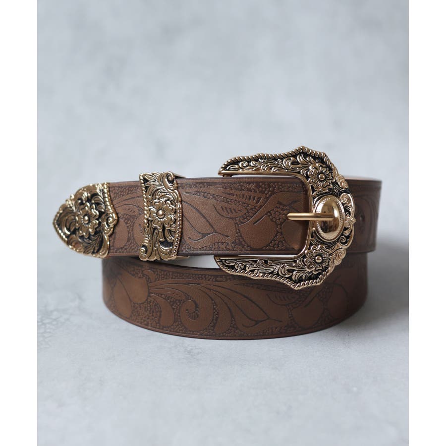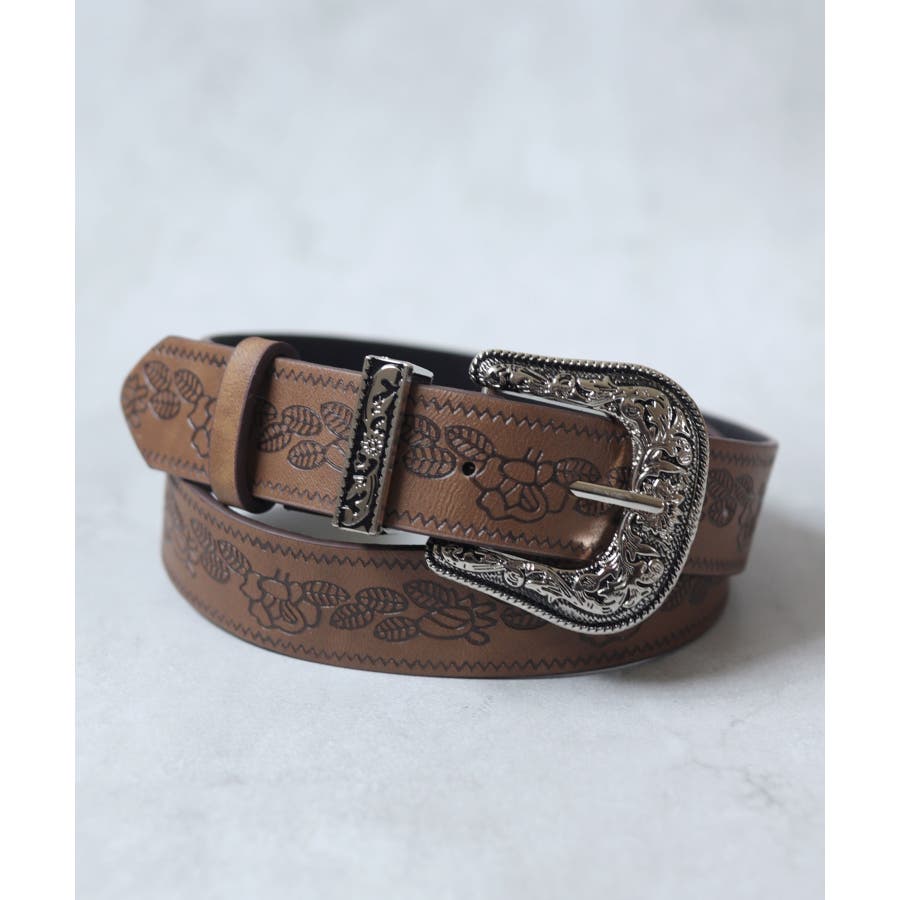 ボタニカルプリントが異国情緒漂うウエスタンワイドベルト/カジュアルベルト。