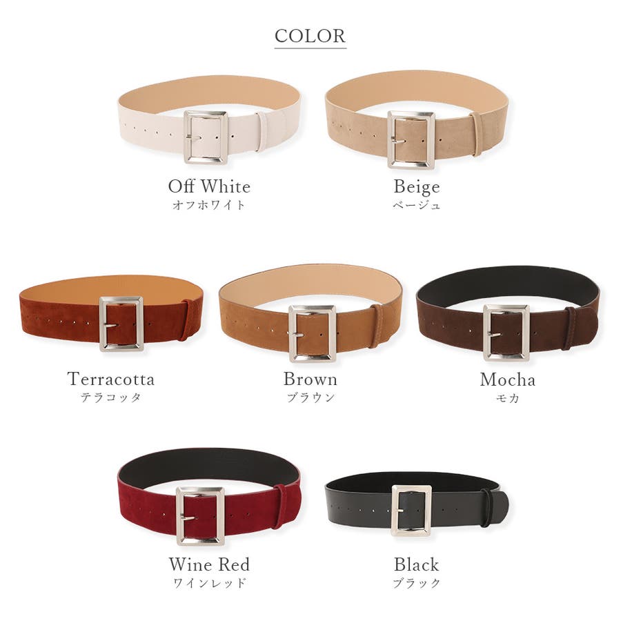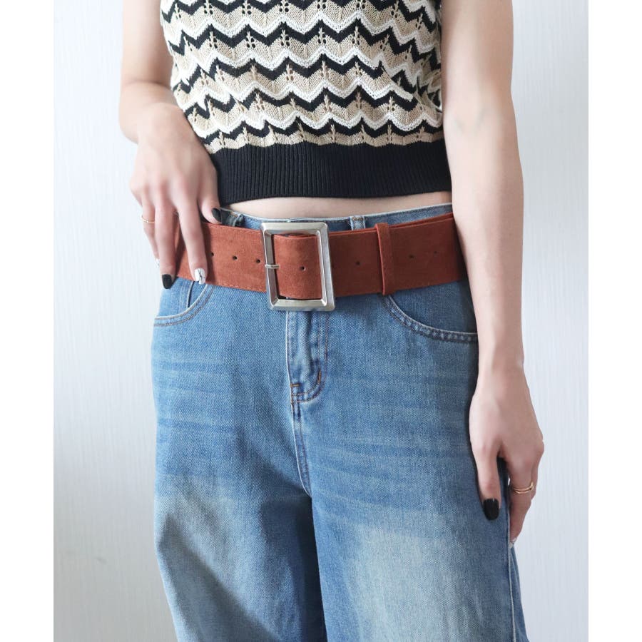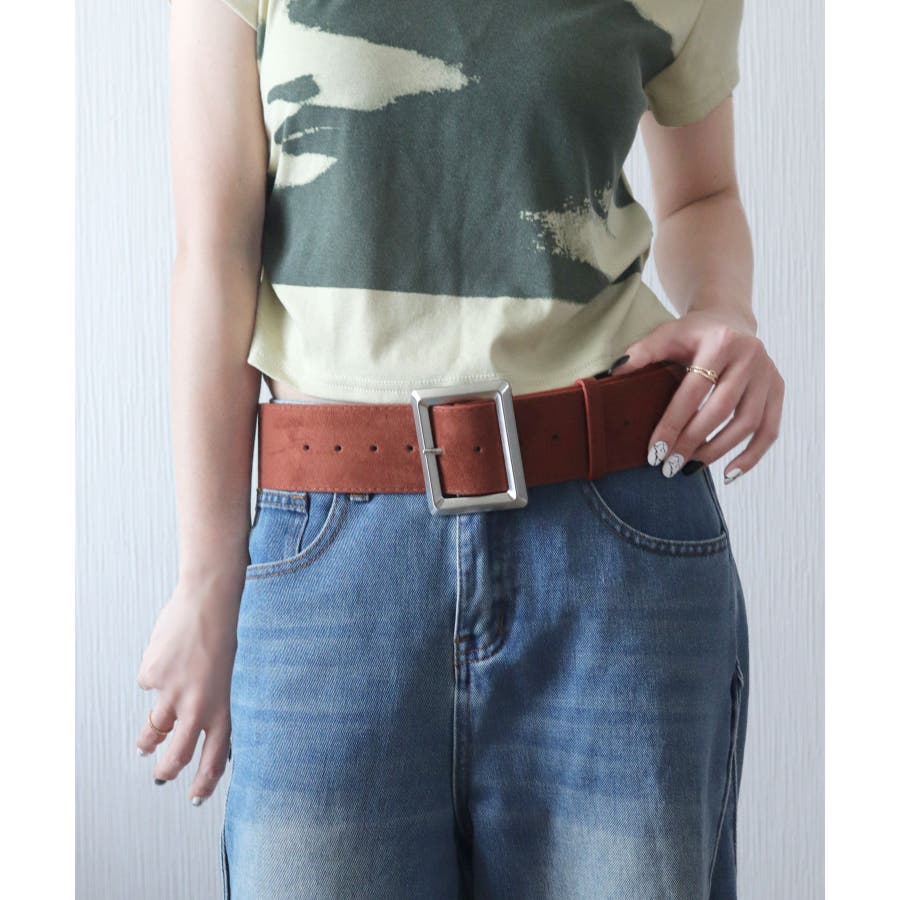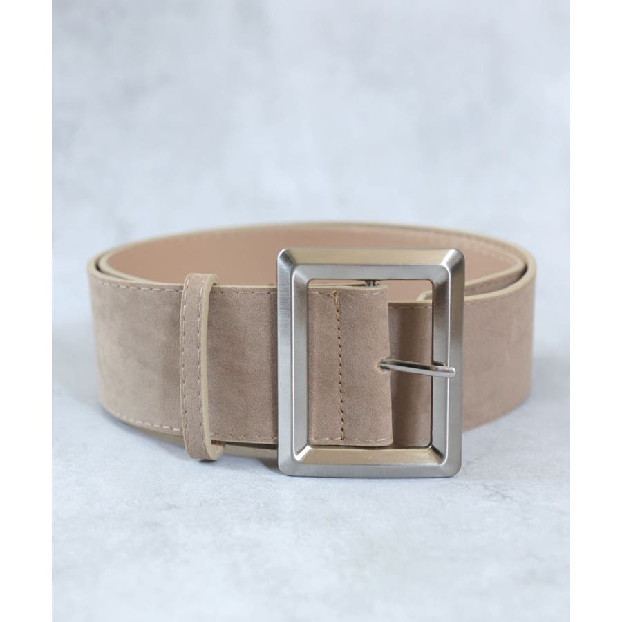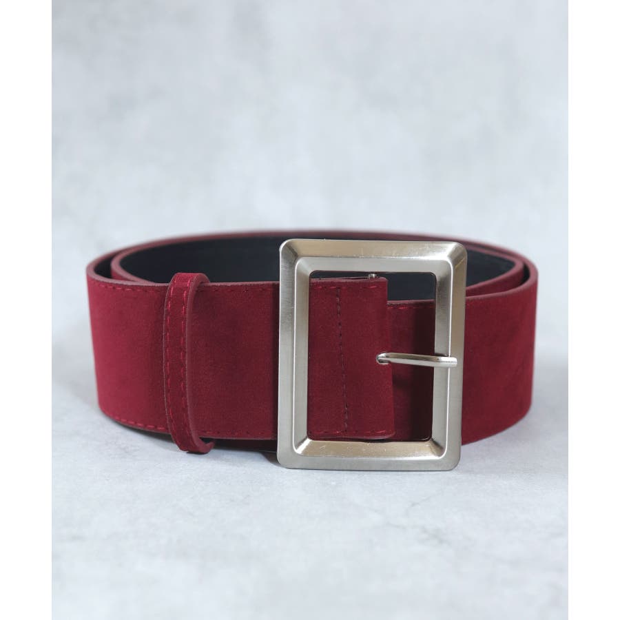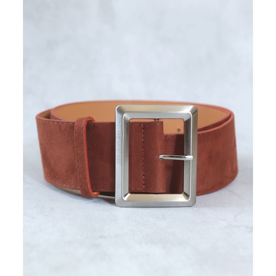 起毛感のあるスエード調レザーにボリュームたっぷりのシルバーフレームを組み合わせたおしゃれなワイドベルト♪