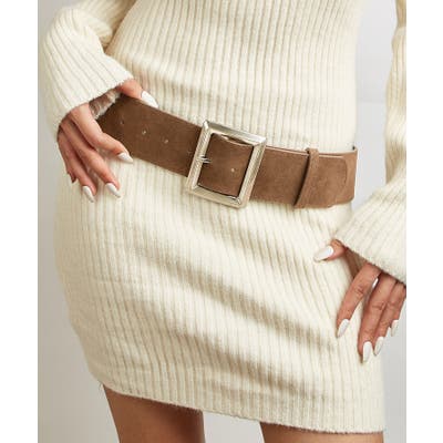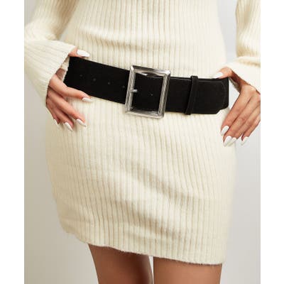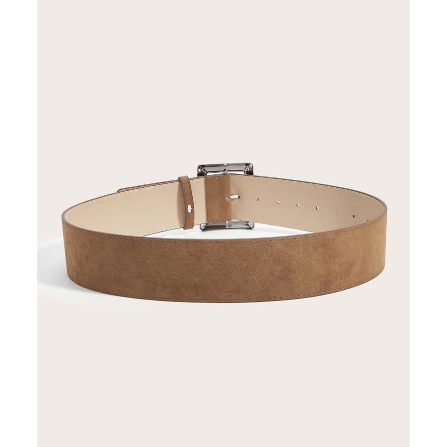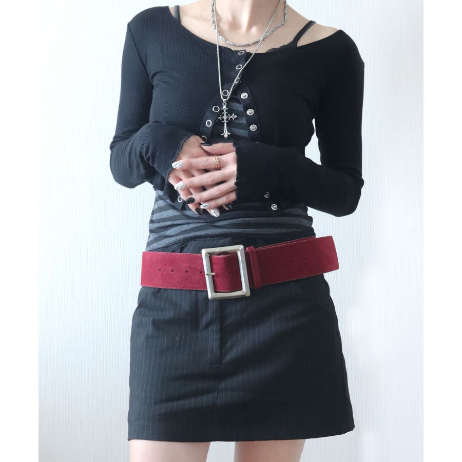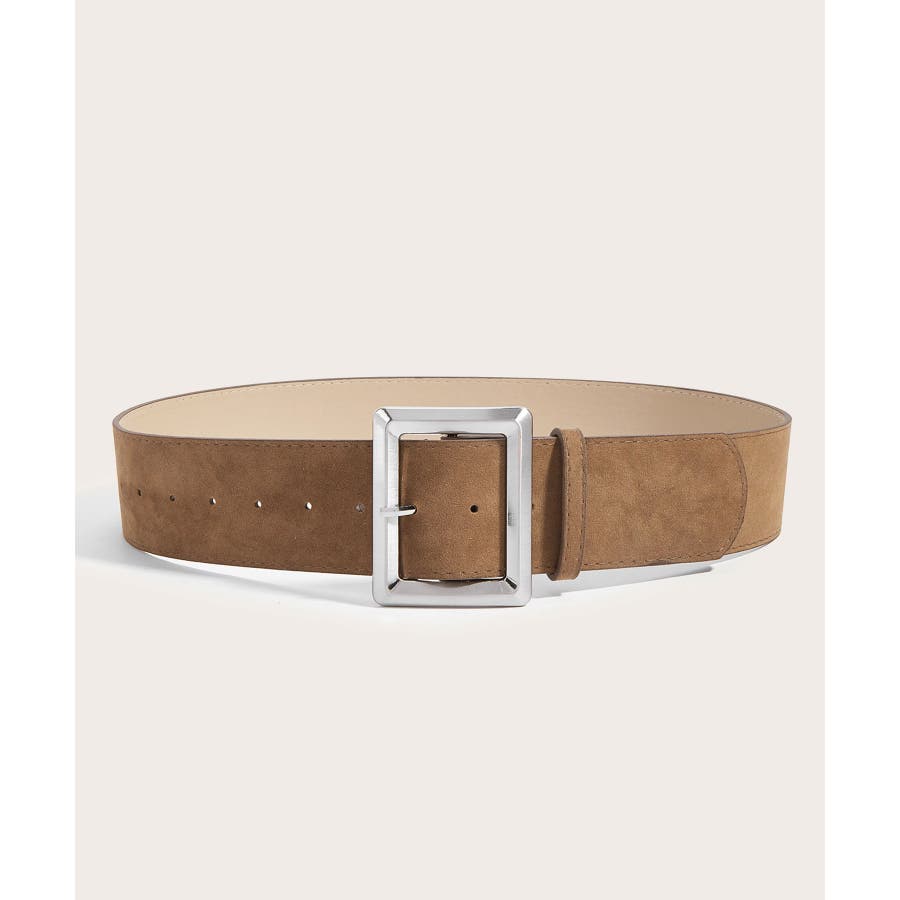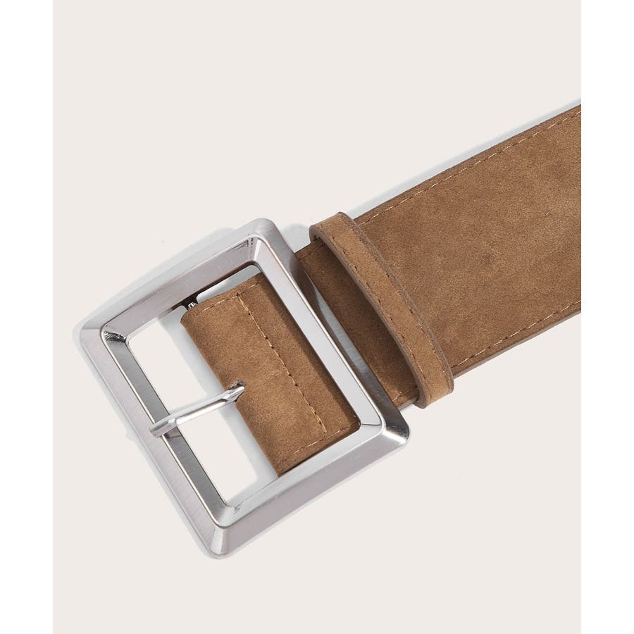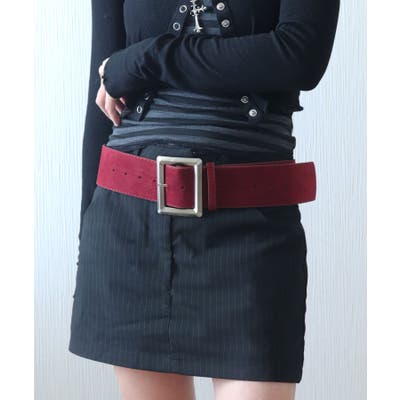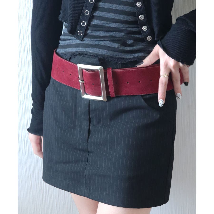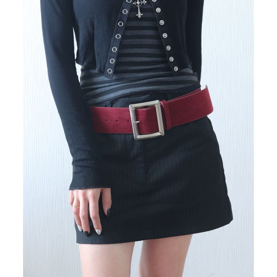 起毛感のあるスエード調レザーにボリュームたっぷりのシルバーフレームを組み合わせたおしゃれなワイドベルト♪