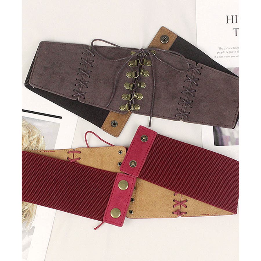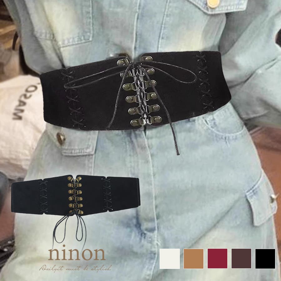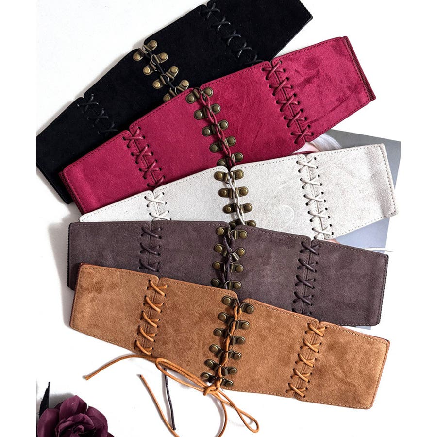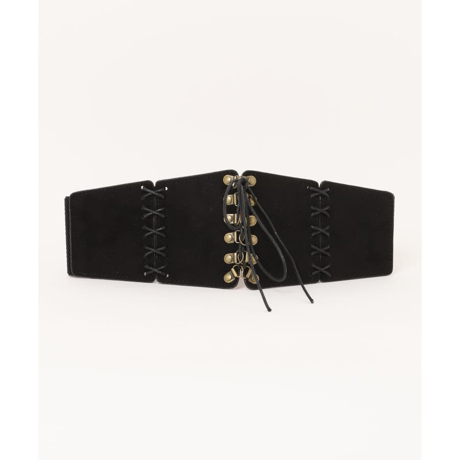 スエード風PUレザーに、編み上げデザインがウエスタンテイスト漂うキュートすぎない上品ルックのウエストベルト◎