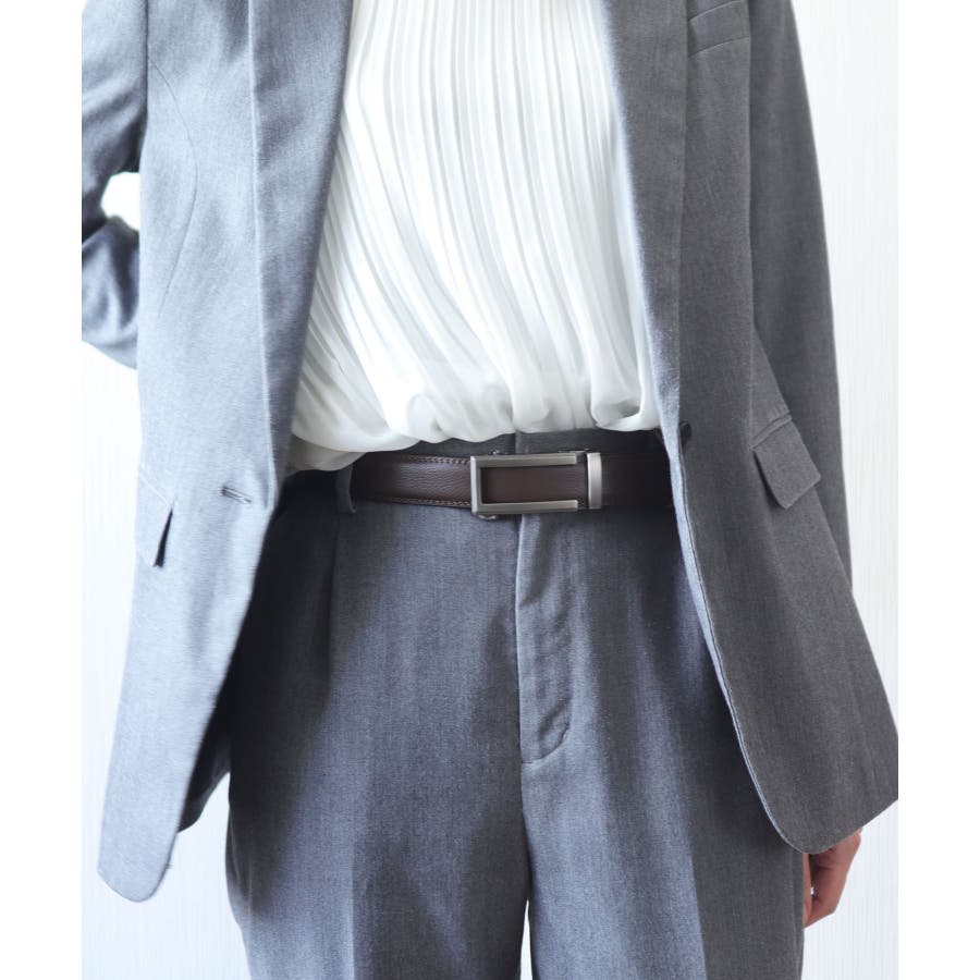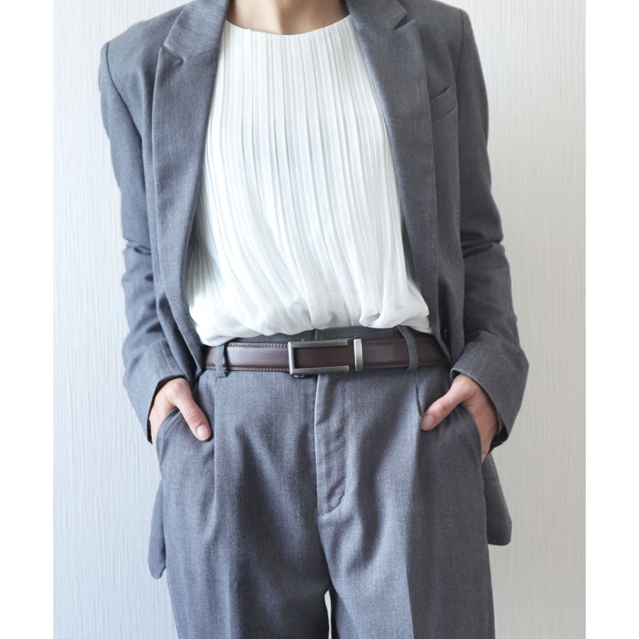 オンオフ兼用でキレイめにも、大人カジュアルにも合わせやすい、おしゃれなベルトに。