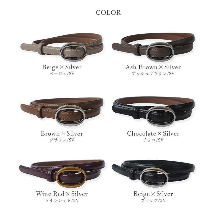 1.4cmの細めベルトにゴールドorシルバーのバックルを組み合わせた、大人かわいいシンプルなデザインのベルト。