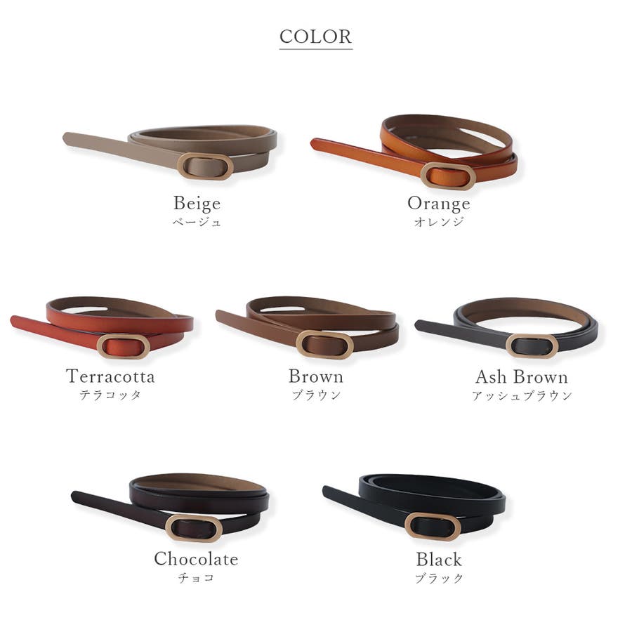 1.0cmの細めベルトにマットゴールドのバックルを組み合わせた、大人かわいいシンプルなベルト◎