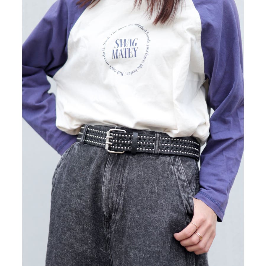 オンオフ兼用でキレイめにもカジュアルにもマッチするスタッズベルトです。