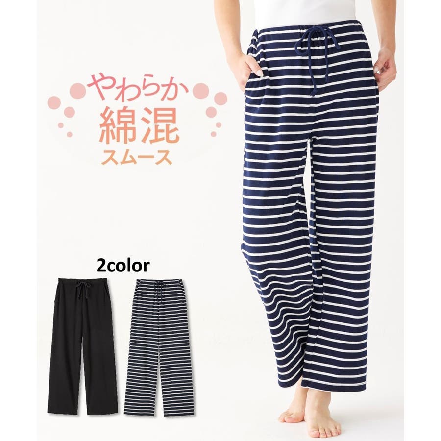 S M L LL 綿混スムースルームパンツ