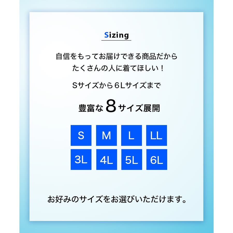| サイズ | S / M / L / LL / 3L / 4L / 5L / 6L |