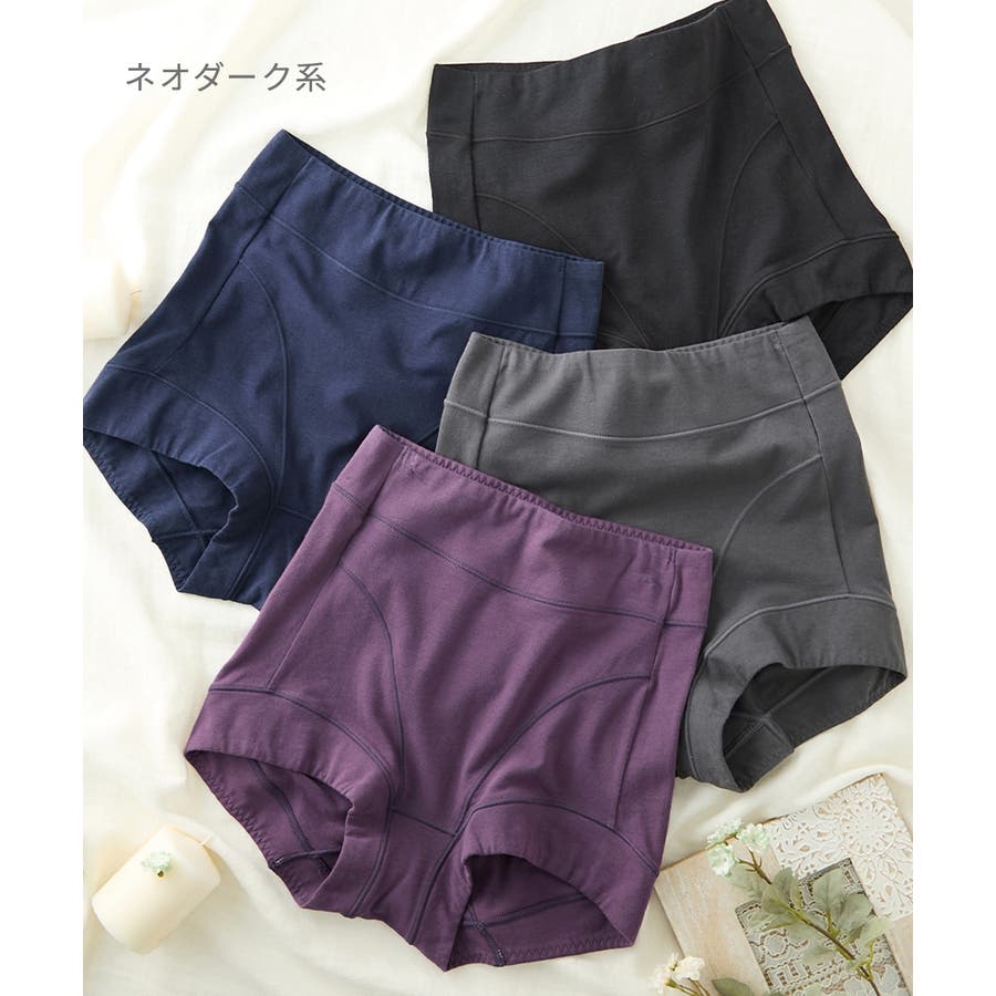 【ネオダーク系】テンセルTM繊維・綿混ストレッチお腹・脚口らくちん深ばき丈ショーツ4枚組