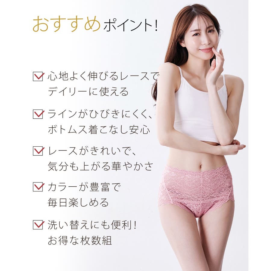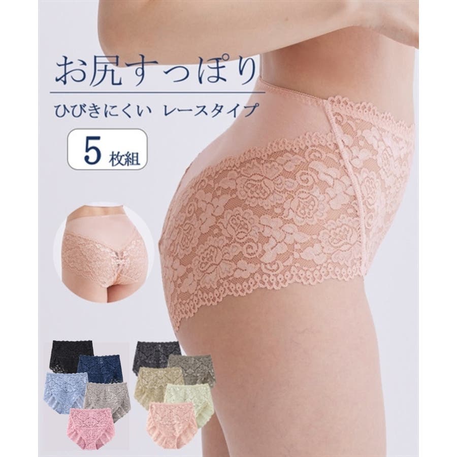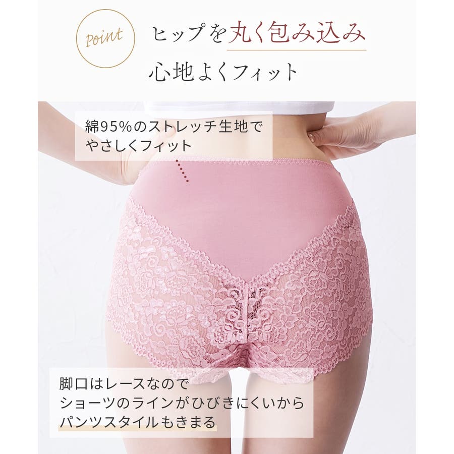 綿混ストレッチレーシー深ばき丈ショーツ5枚組