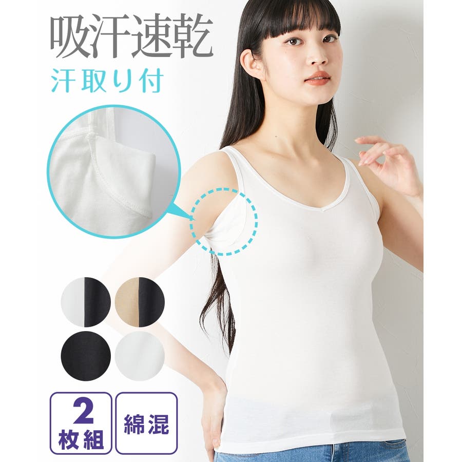 吸汗速乾 綿混汗取り付タンクトップ2枚組