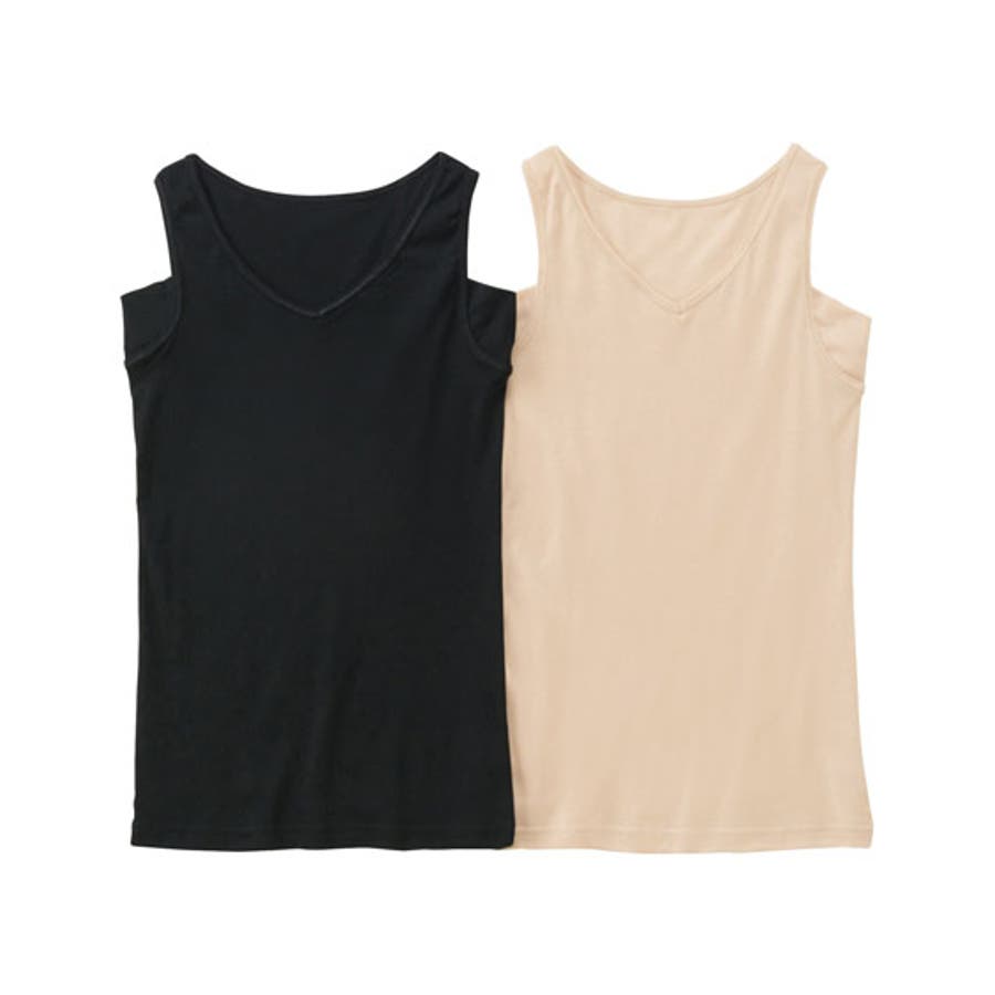 吸汗速乾 綿混汗取り付タンクトップ2枚組
