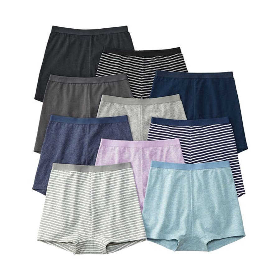 脚口にゴムを使用していないのではき心地ラクなボクサーショーツ。ウエストは優しくフィットするゴムで、身生地は綿たっぷりのストレッチ素材だから肌ざわりも快適。デイリー使いに最適なシンプルな10枚組。 |