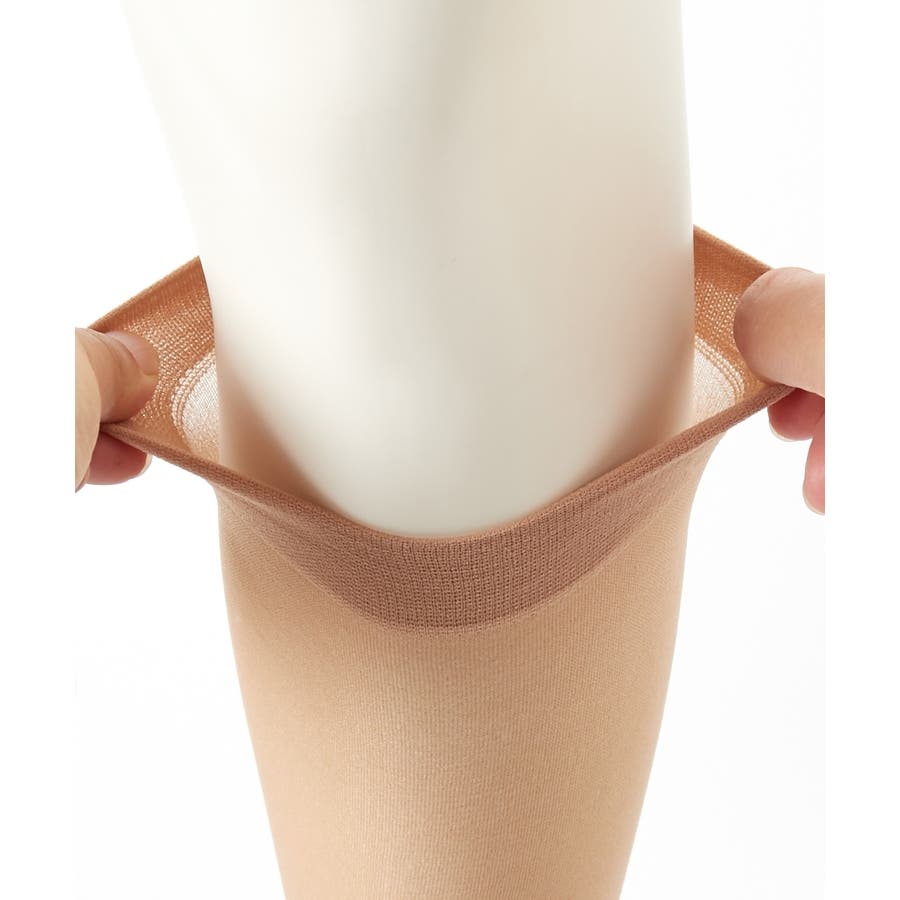 | レッグ部はウーリーナイロン糸100%で編まれているので、しめつけ感が少なく、ソフトでやさしいはき心地。足口ゆったりで、あとがつきにくいのも嬉しい♪ |