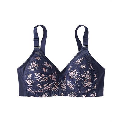 【グレイッシュブルー系】小花ノンワイヤー安定ブラジャー(2色レースは日本製)