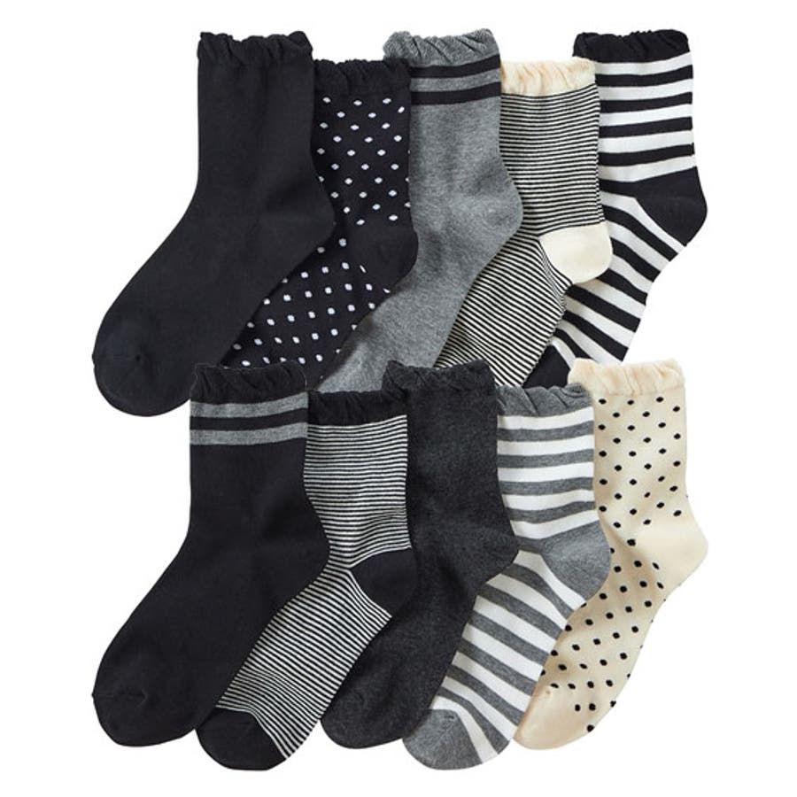 | **10足セットで、毎日違った柄を楽しもう!**10足の靴下は、ベーシックな柄なので、どんな場所でも履くことができます。オフィス、学校、街中、アウトドアなど、シーンを選ばず活躍します。10足セットなので、毎日違った柄を楽しめるのもポイント!気分に合わせて、その日のコーディネートに合った靴下をお楽しみいただけます。無地・ボーダー・ライン・細ボーダー・ドットの5柄各2足 入っています。**足口ゆったり**足口をゴムなし仕様で跡がつきくにく。やさしいはき心地のクルーソックス**つま先・かかとは補強仕様**負荷のかかりやすい つま先とかかとは補強仕様になっています。 【検索KW】 婦人 レディス レディース ソックス セット 靴下 ベーシック クルー丈 クルーソックス 10足組 10足セット 10足 セット 福袋 まとめ買い お得 お買い得 シンプル カジュアル 無地 ドット ボーダー 合わせやすい 秋 冬 春 夏 オールシーズン 通年 プチプライス プチプラ |