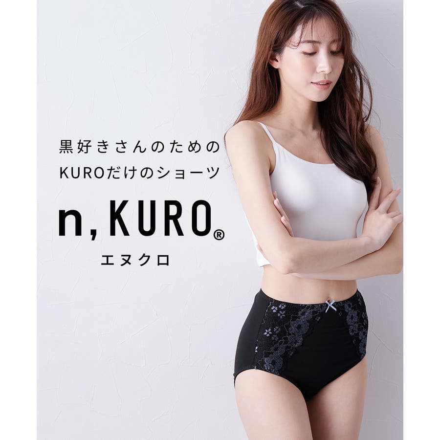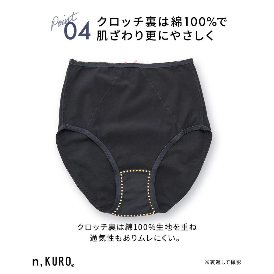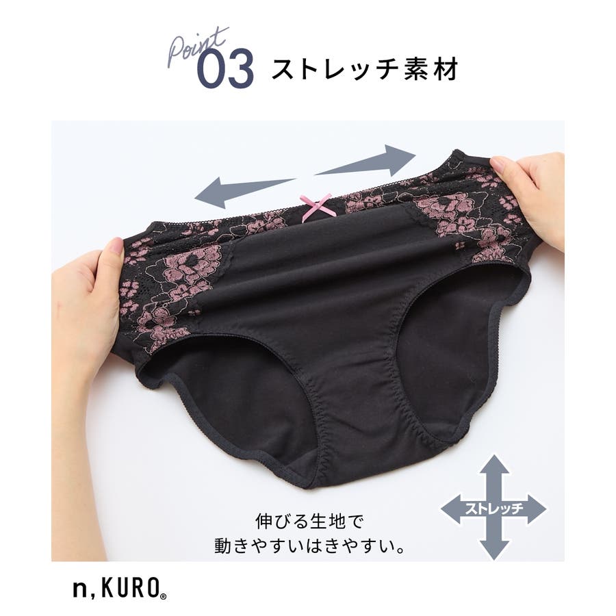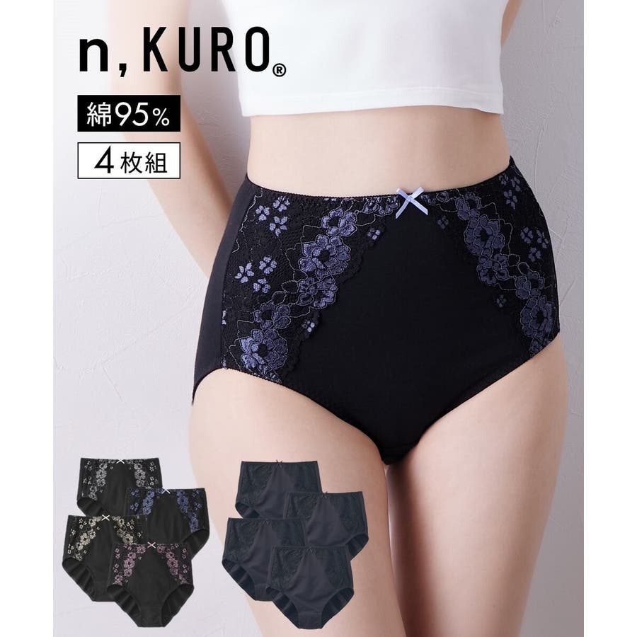 n,KURO 綿混ストレッチブラックカラー配色レーシー深ばき丈ショーツ4枚組