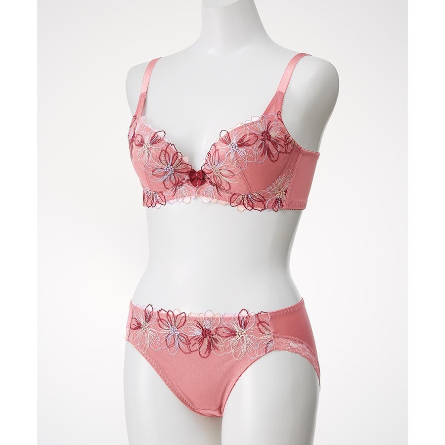 脇高刺しゅうレースブラジャーショーツセット(コスモス)(トリンプ)