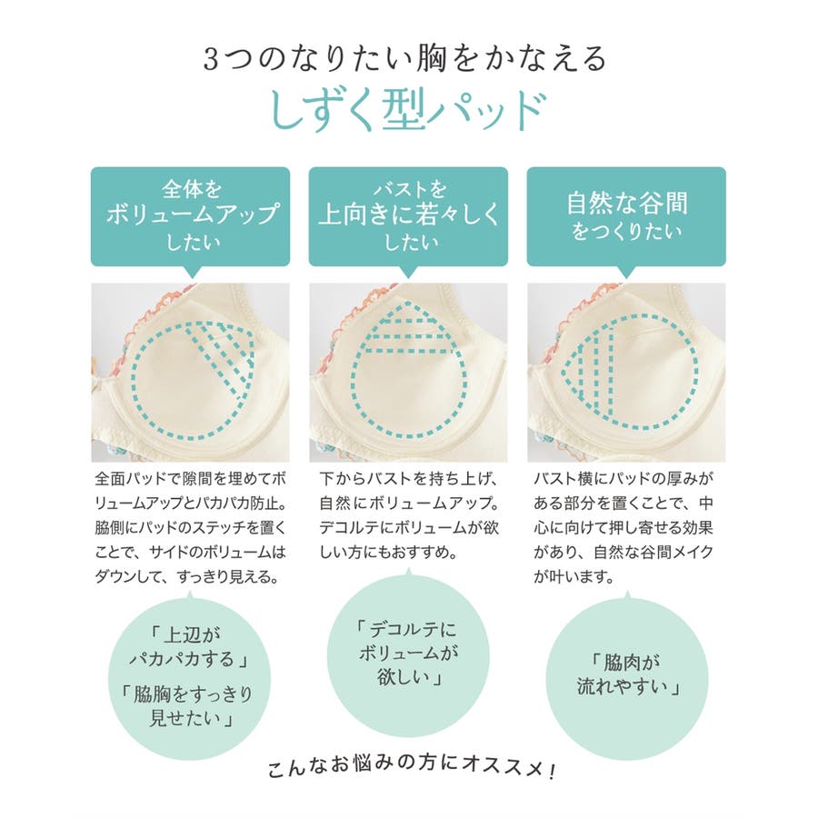 プチ胸サイズ 着心地いいクッションに包まれるノンワイヤーブラジャー(プティシュ)