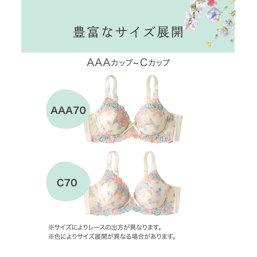 | サイズ | AAA70 / AAA75 / AA70 / AA75 / AA80 / A65 / A70 / A75 / A80 / A85 / B65 / B70 / B75 / B80 / B85 / C65 / C70 / C75 / C80 / C85 |