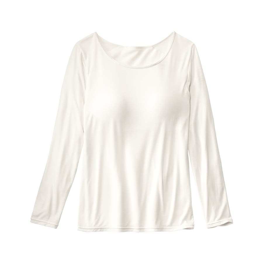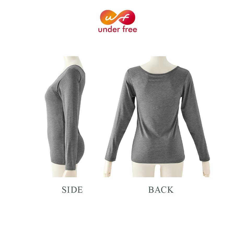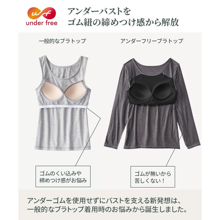 人気のアンダーフリーシリーズにあったか素材登場!従来通りの人気ポイントはそのまま 締めつけずにあったか快適!汗や湿気を吸収して発熱するウォームコア素材のアンダーフリーブラトップ。冬から春先まで使える長袖で、内蔵ブラのアンダーはゴムなしだから締めつけずに楽ちん&後ろ姿もすっきりキレイ。冬にうれしい静電気防止機能付で、脇に消臭テープ付で気になるニオイも軽減します。【検索KW】シームレス ノンワイヤー カップ付 パッド付 暖かい |