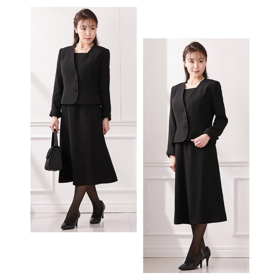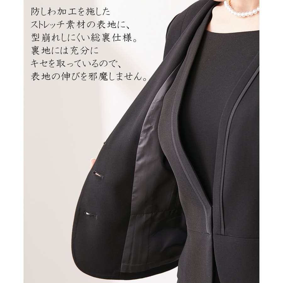 【大きい胸専用】【喪服 礼服 フォーマル】洗える防しわノーカラーアンサンブル(ノ…