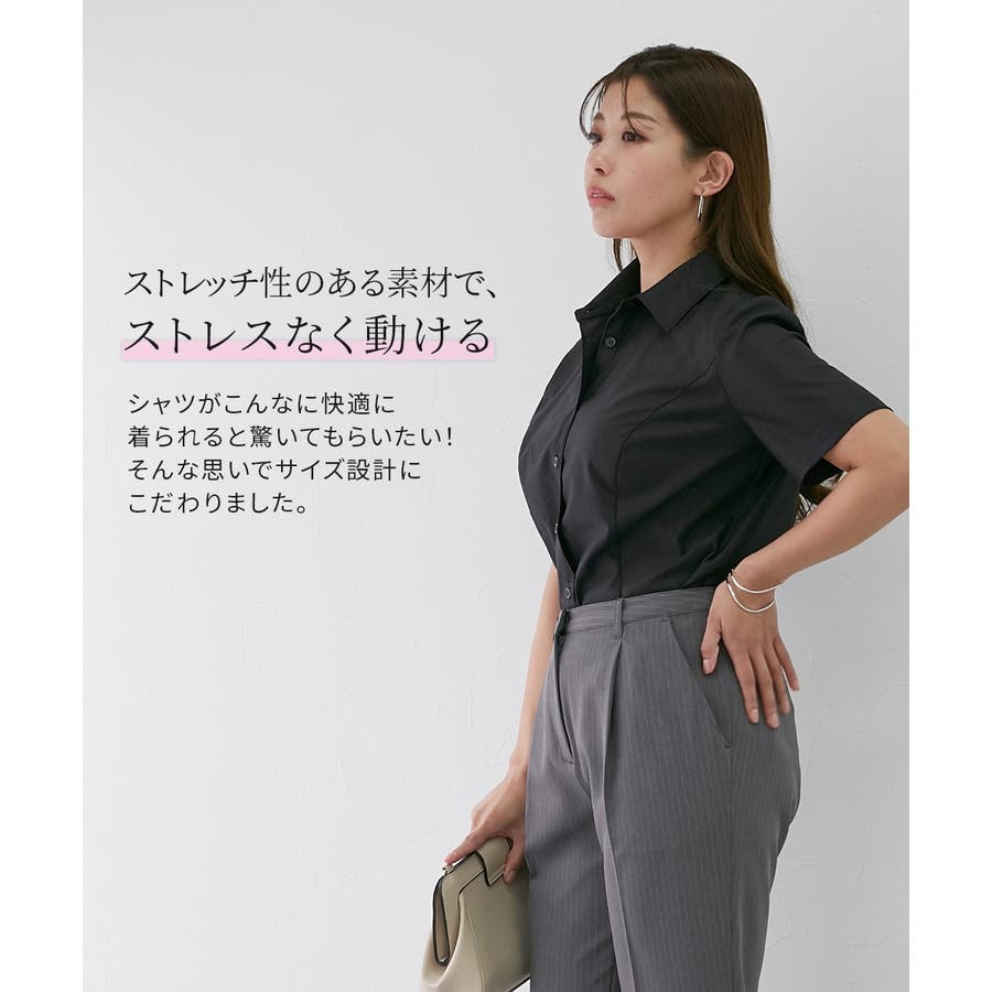 【大きい胸専用】ボタンがきちんと閉まる 半袖シャツ(事務服・制服・白シャツ)