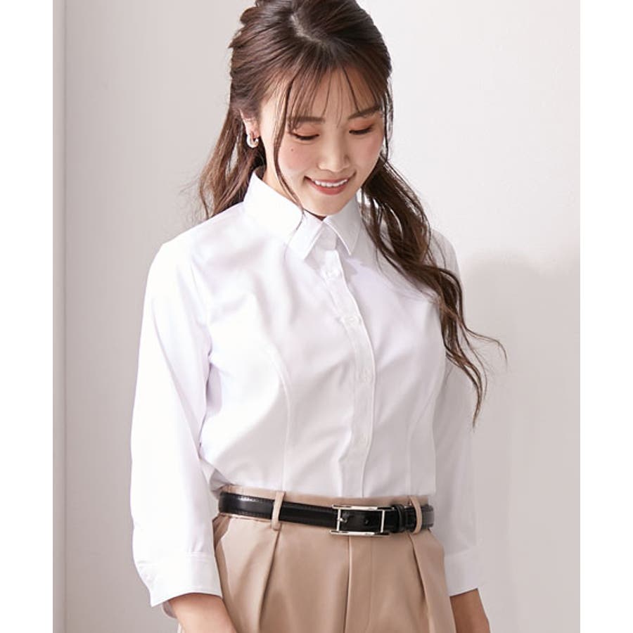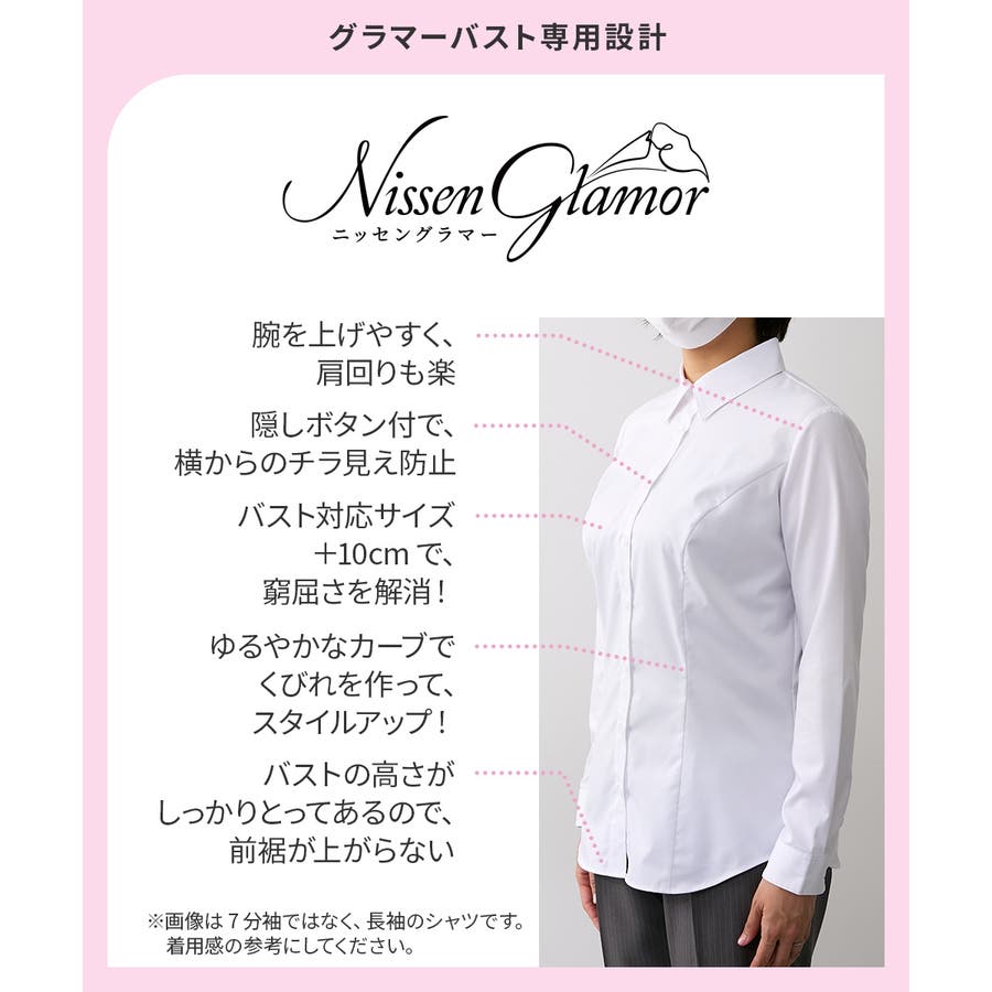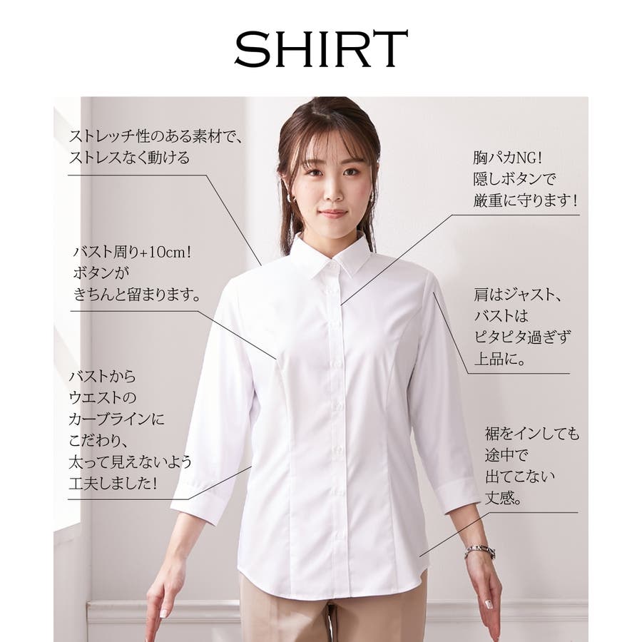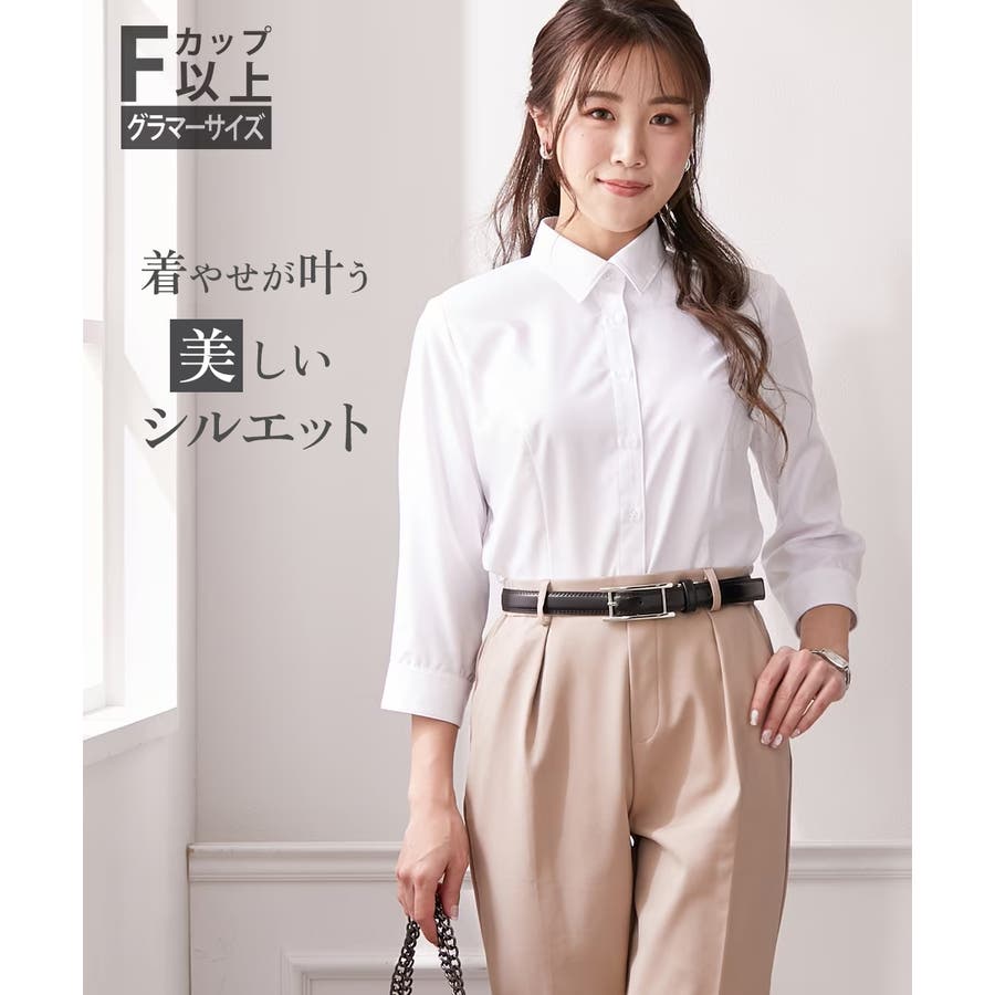 【大きい胸専用】ボタンがきちんと閉まる 7分シャツ(事務服・制服・白シャツ)